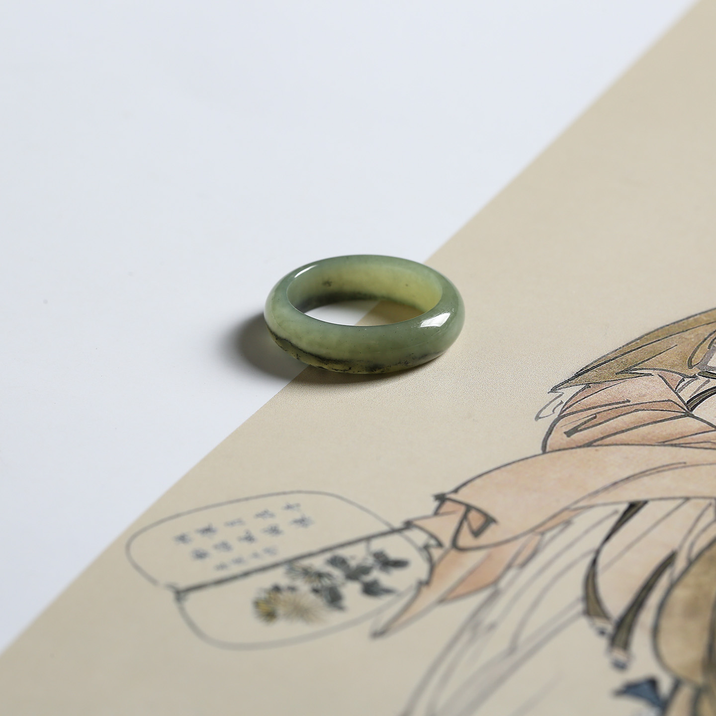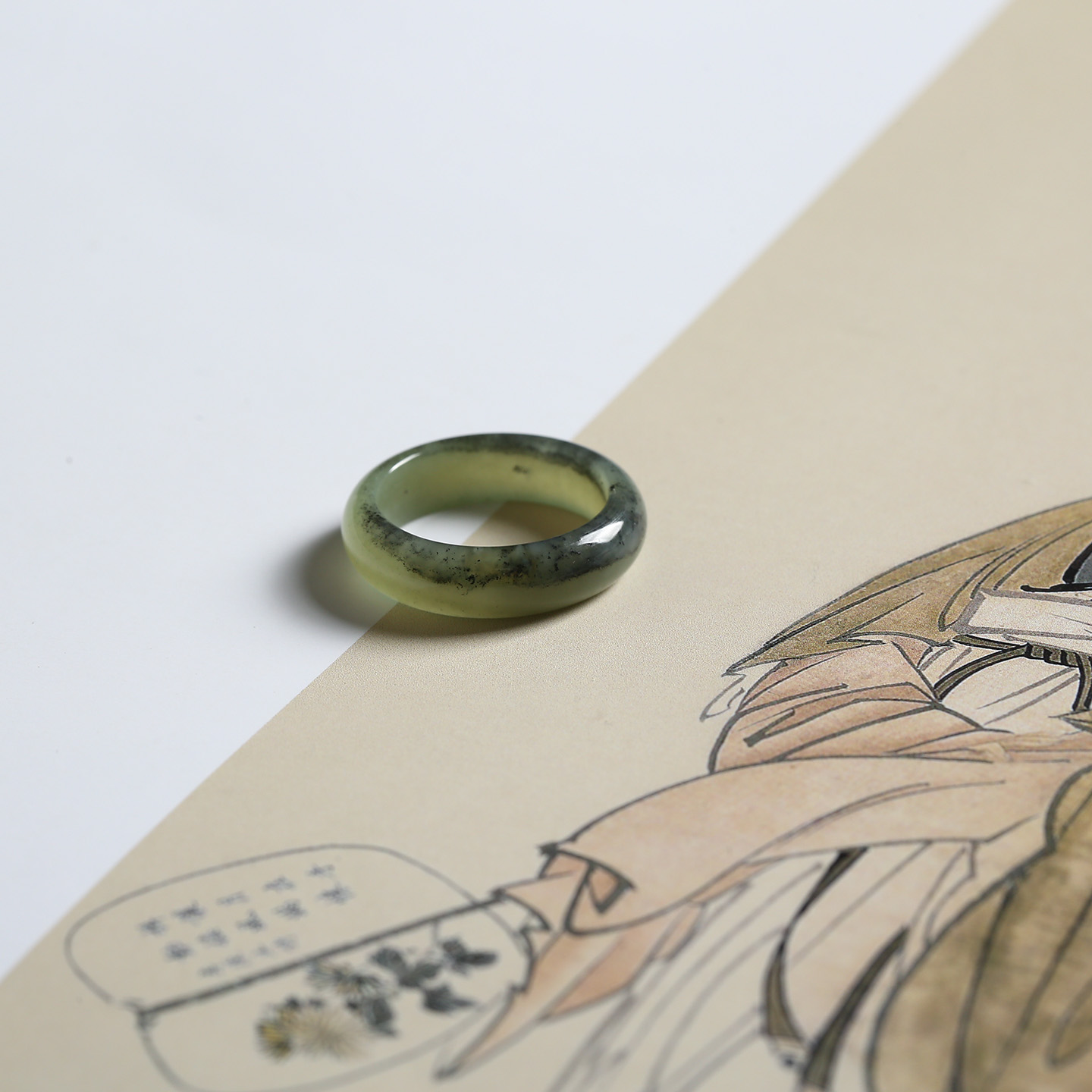 16号戒指 新疆和田玉青花泥鳅背圆弧素圈指环 418