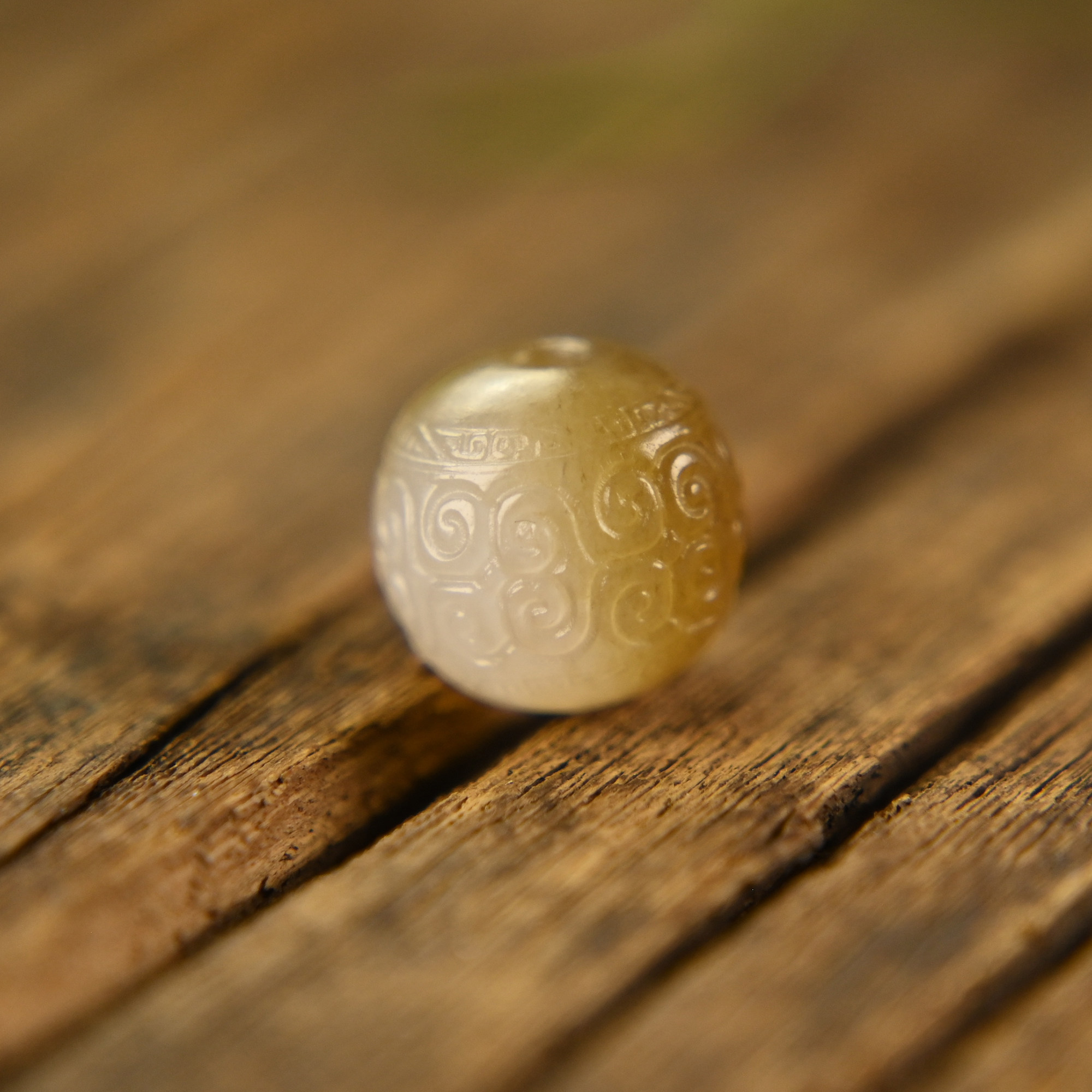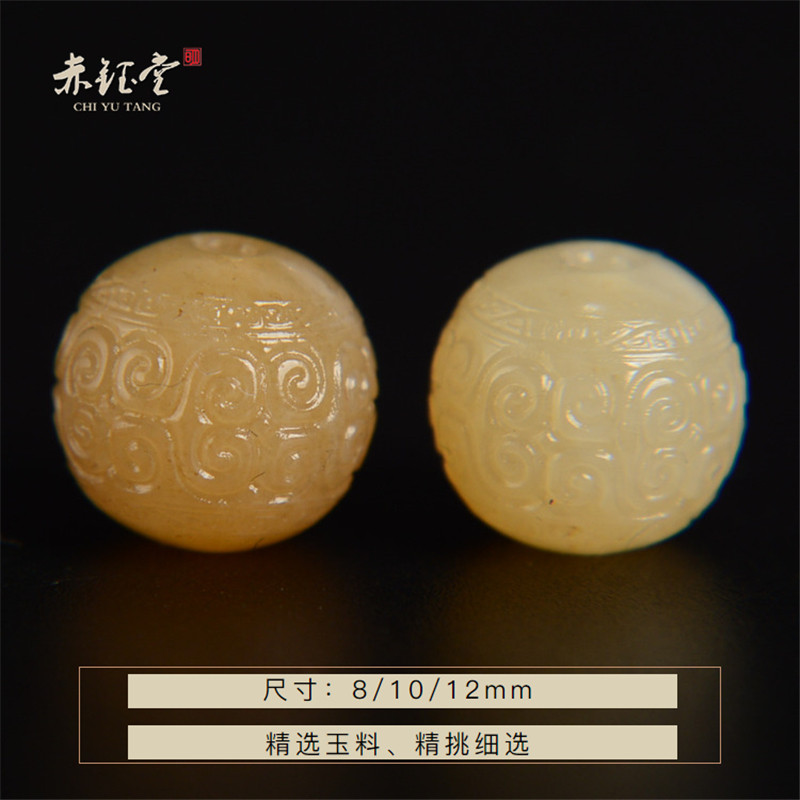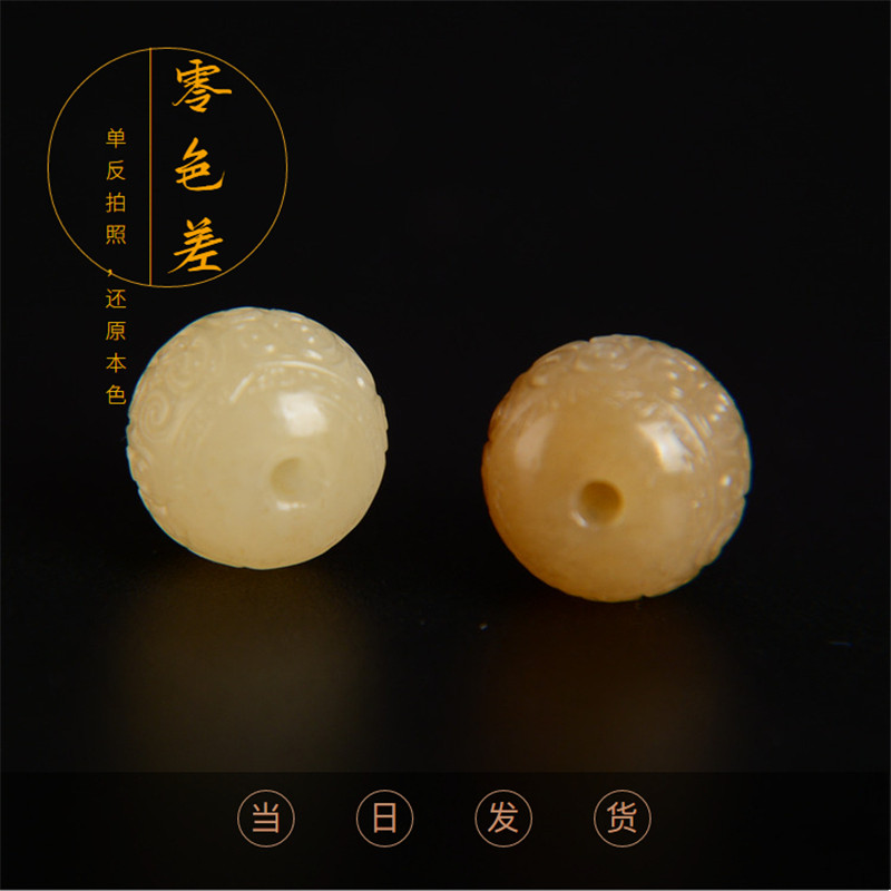 高端真品和田玉散珠单颗且末糖玉回纹珠手串diy配珠配件一物一图