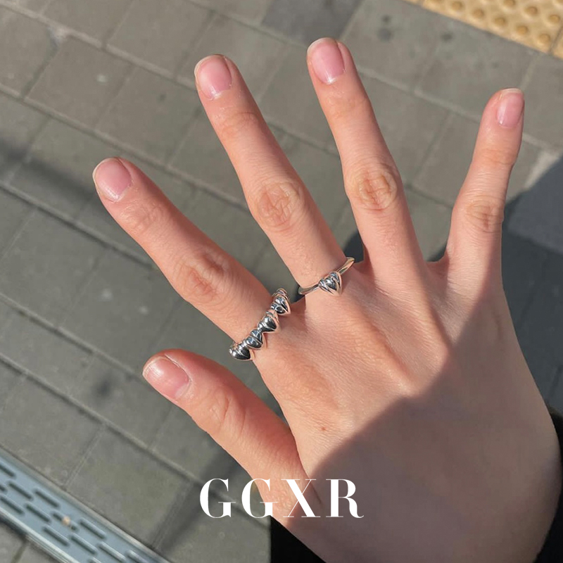 轻奢温柔高级感GGXR小众设计立体桃心系列戒指指环 通体925银叠戴