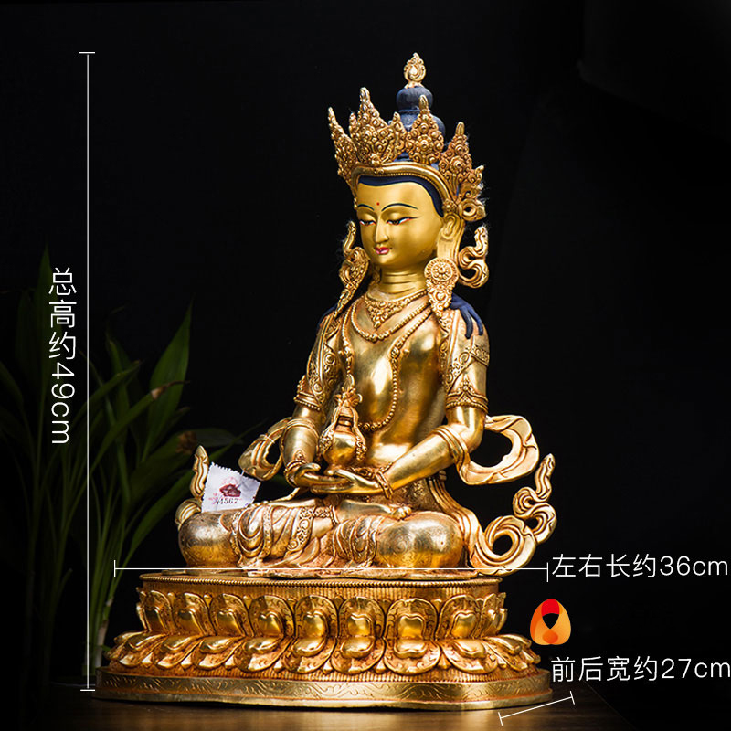 长寿铜像尼泊尔铜鎏金15寸家用室内摆件无量寿佛