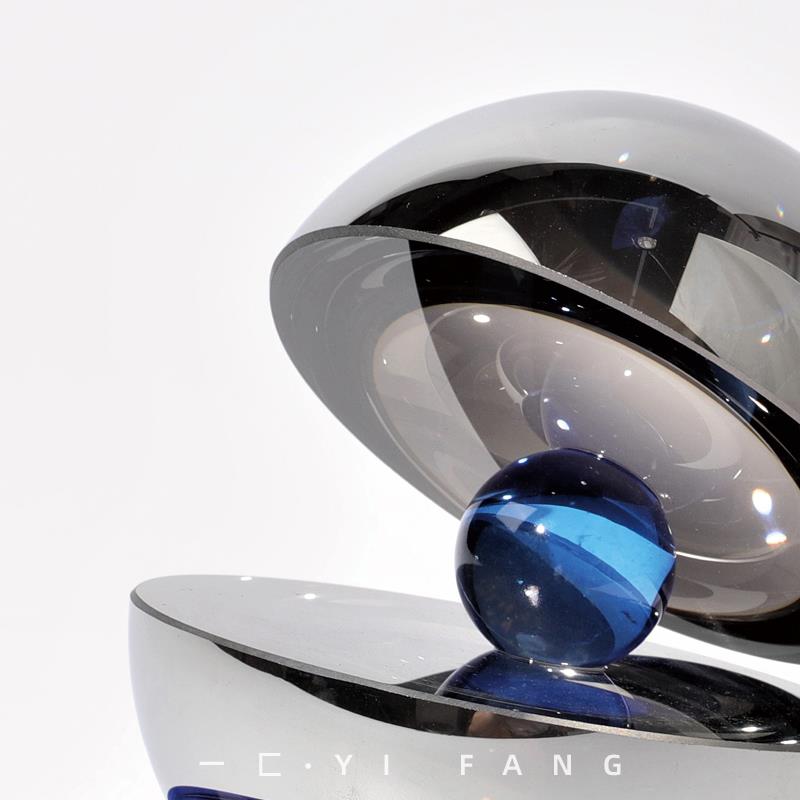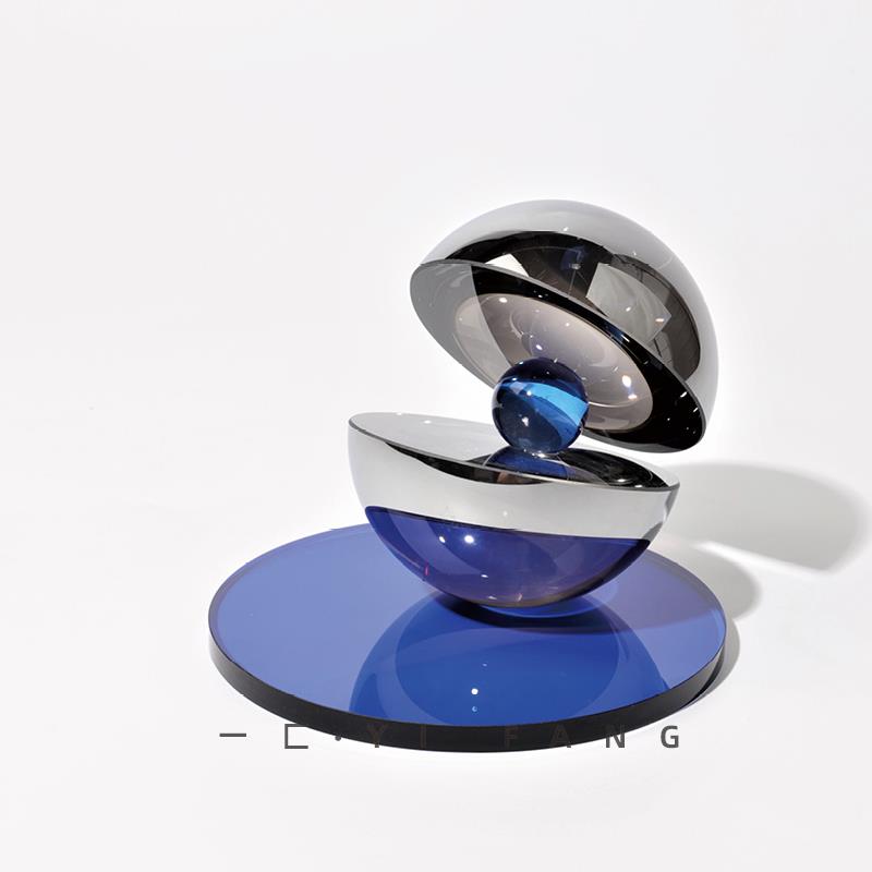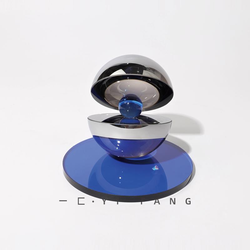 一匚样板房现代简约水晶蓝色半球几何摆件 售楼处软装饰品艺术品