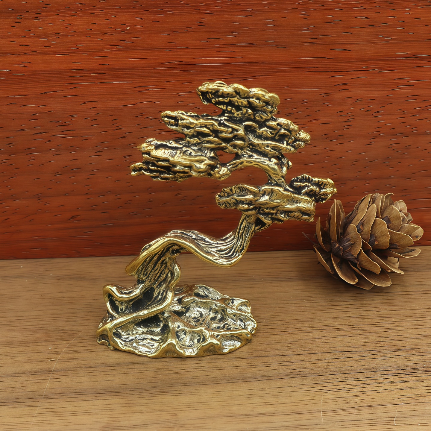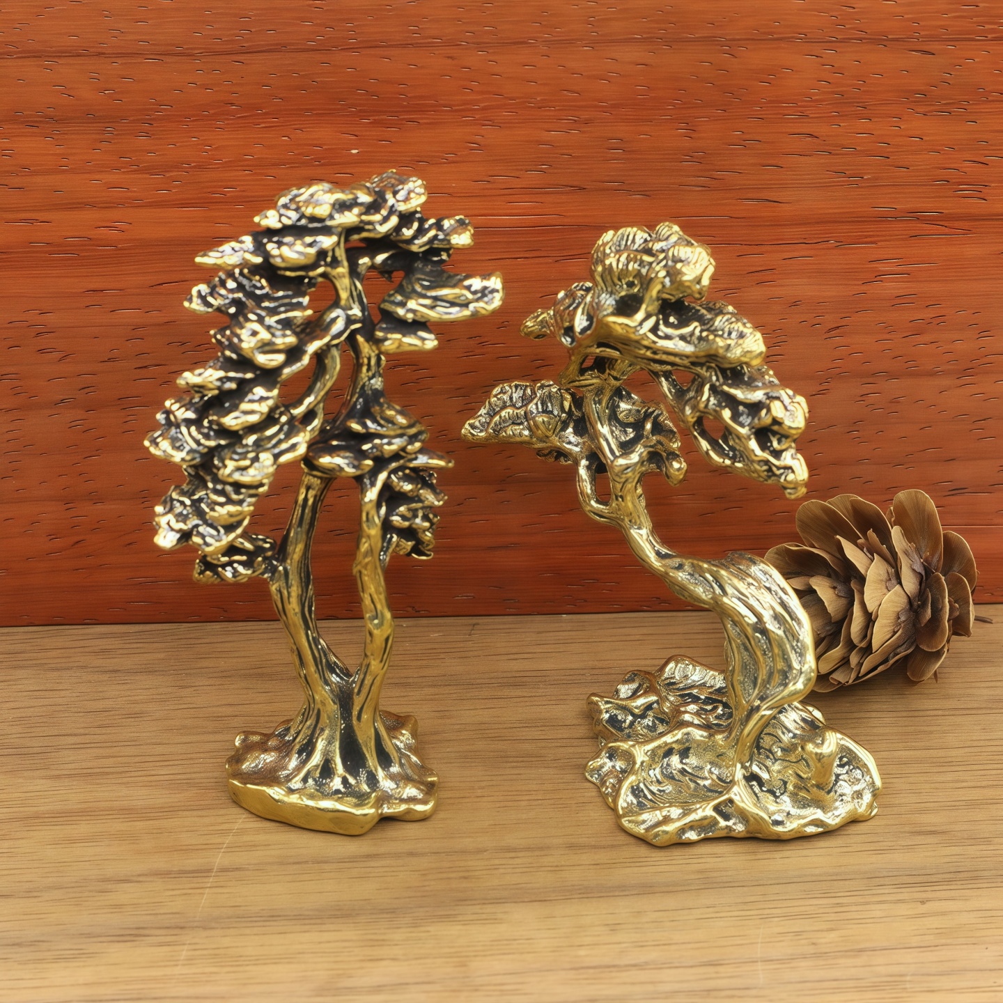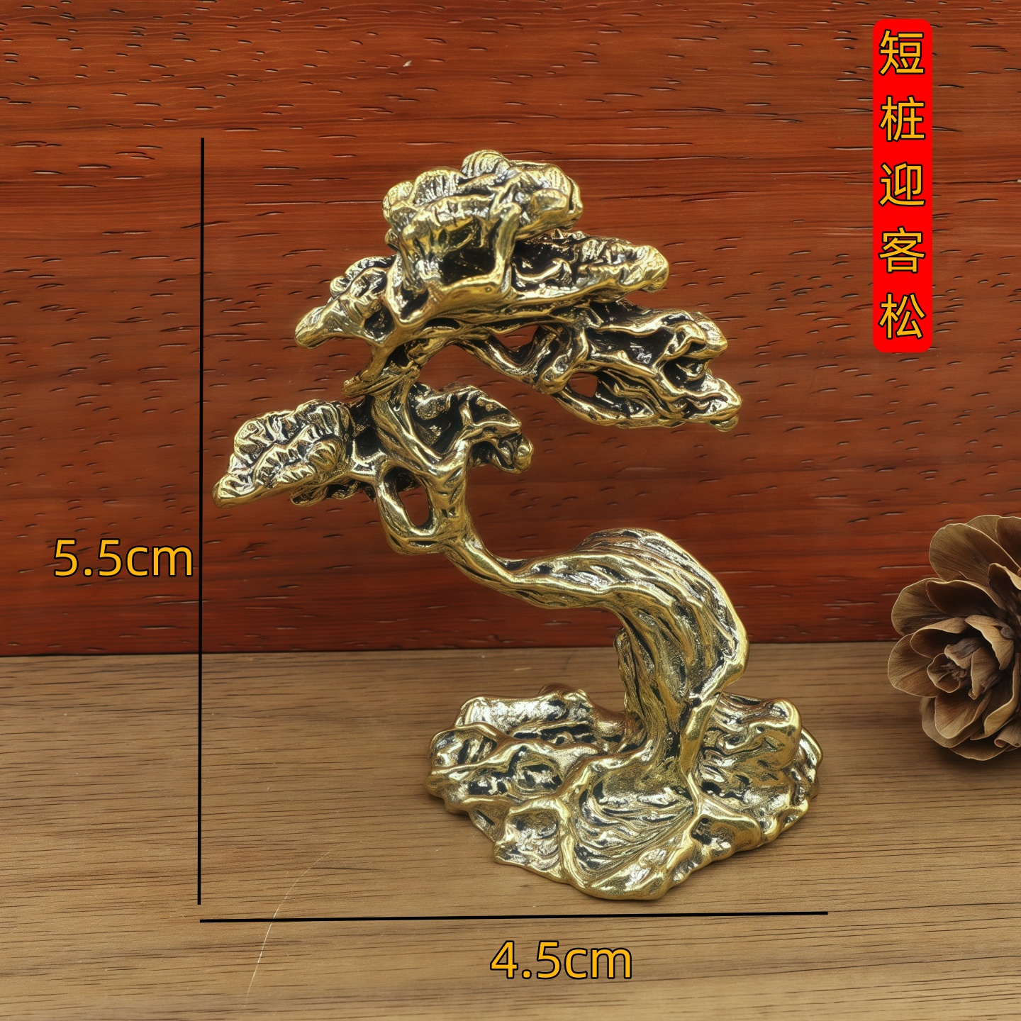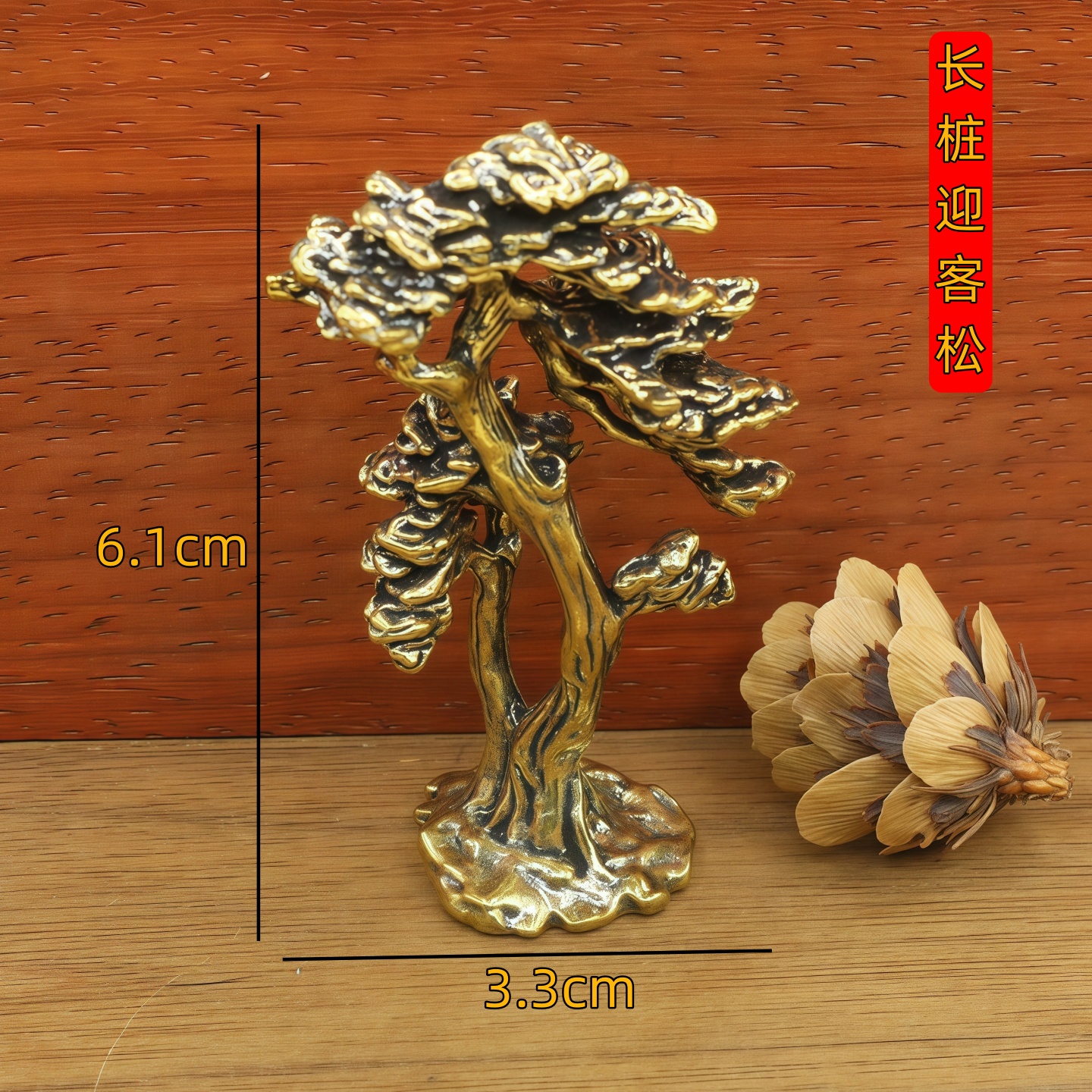 黄铜迎客松摆件家居客厅办公室桌面茶宠装饰工艺品微景观古风礼物