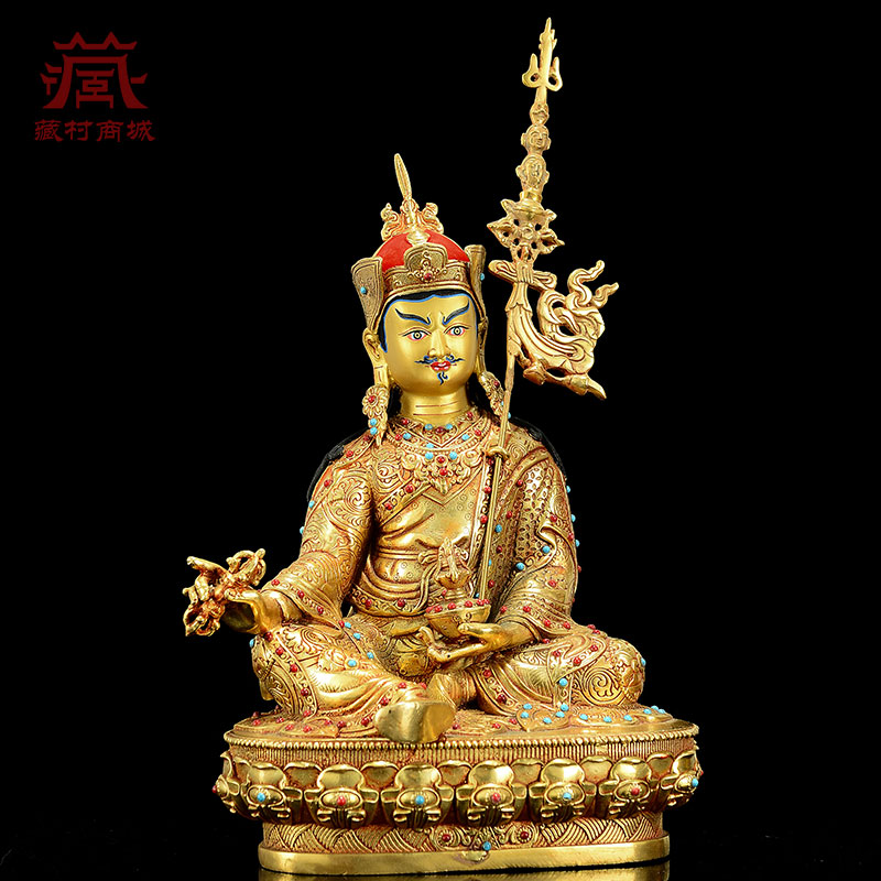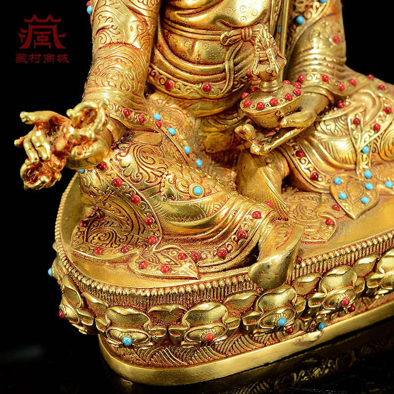 藏村全鎏金《莲花生大士》室内家用精工铜《莲花生大师》桌面铜像