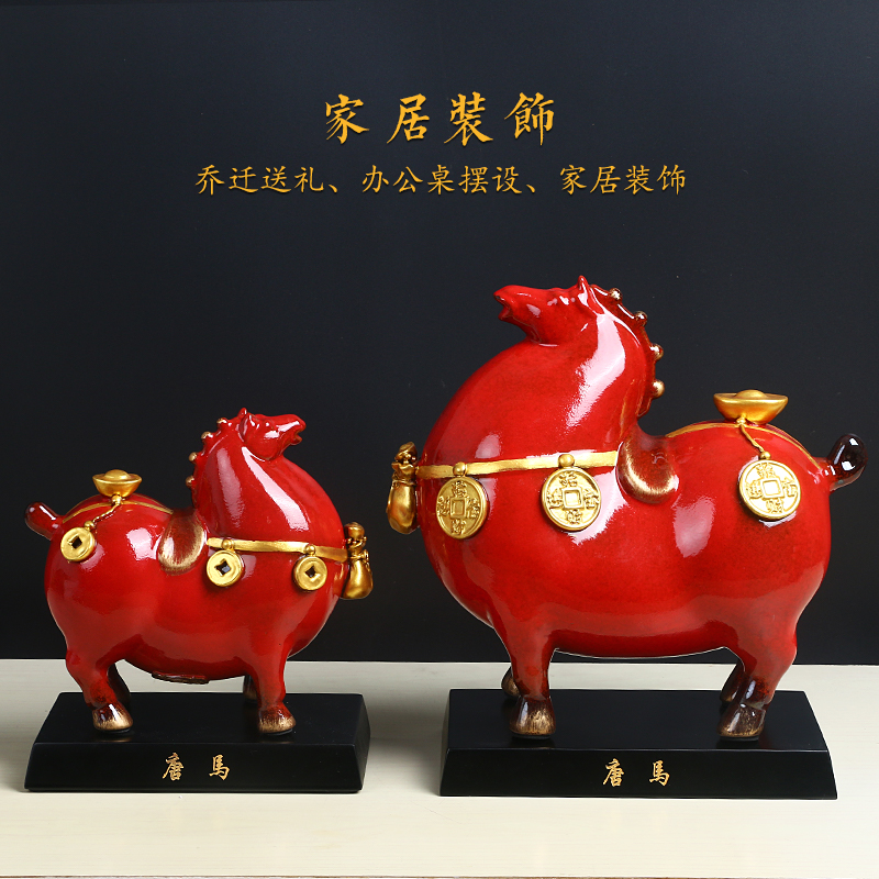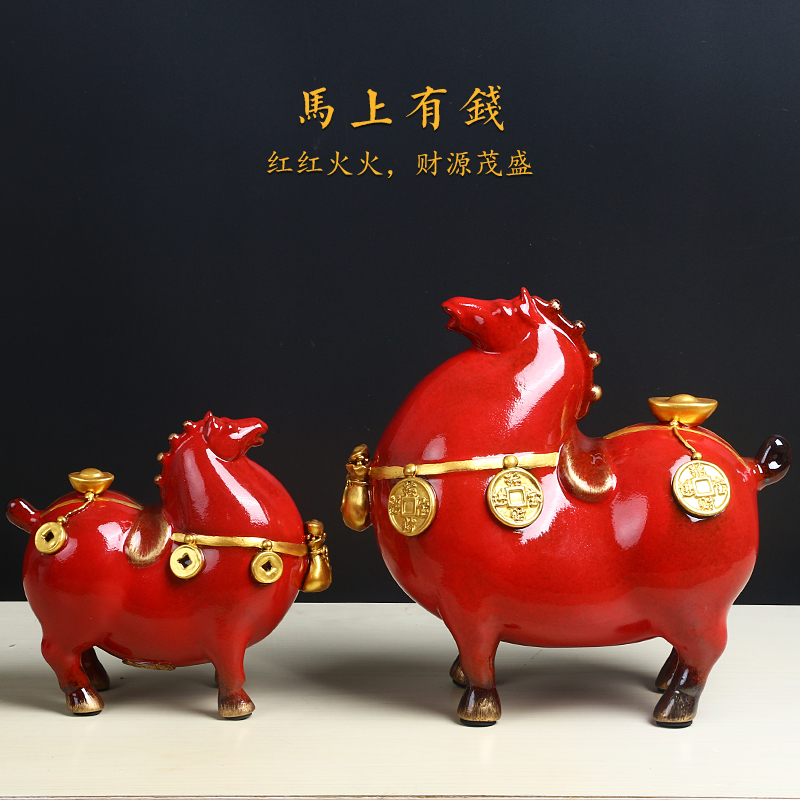 马上有钱陶瓷马摆件办公室客厅桌面装饰品招财红马摆设工艺品礼品