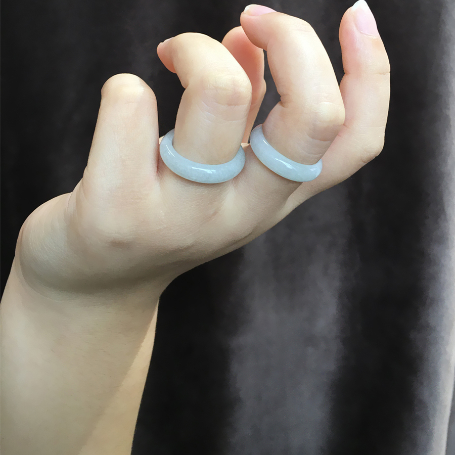 天然翡翠A货玉戒指冰糯种指环雪花棉戒圈男女情侣款玉石个性尾戒