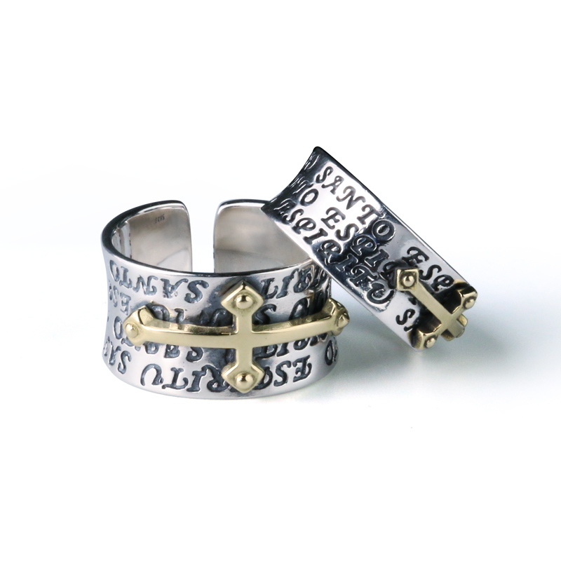 YUKI男士925纯银戒指铭文复古银饰品情侣个性戒子INS欧美潮人