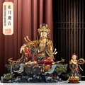 汉白玉韦陀伽蓝护法佛像玉黄镶金韦驮菩萨供奉武财神关公神像摆件