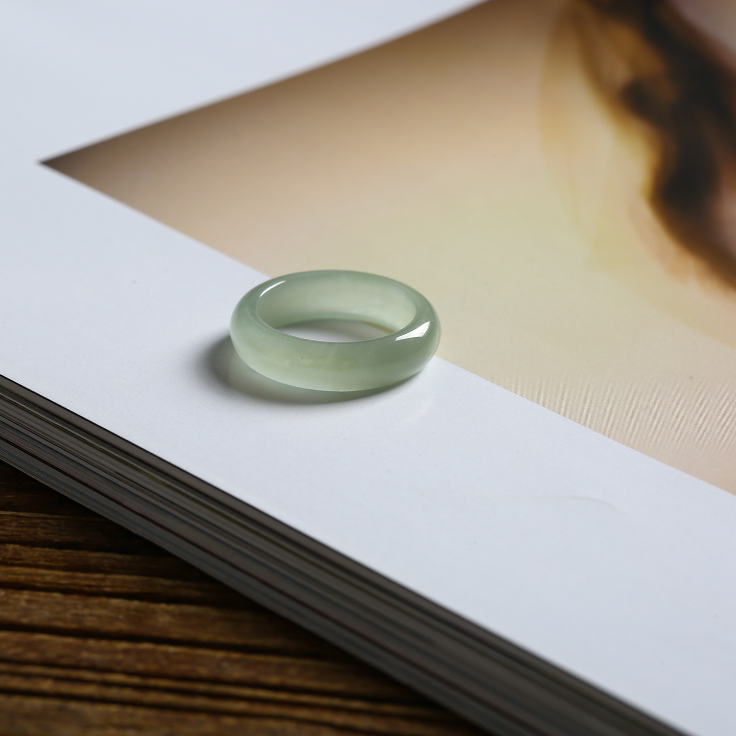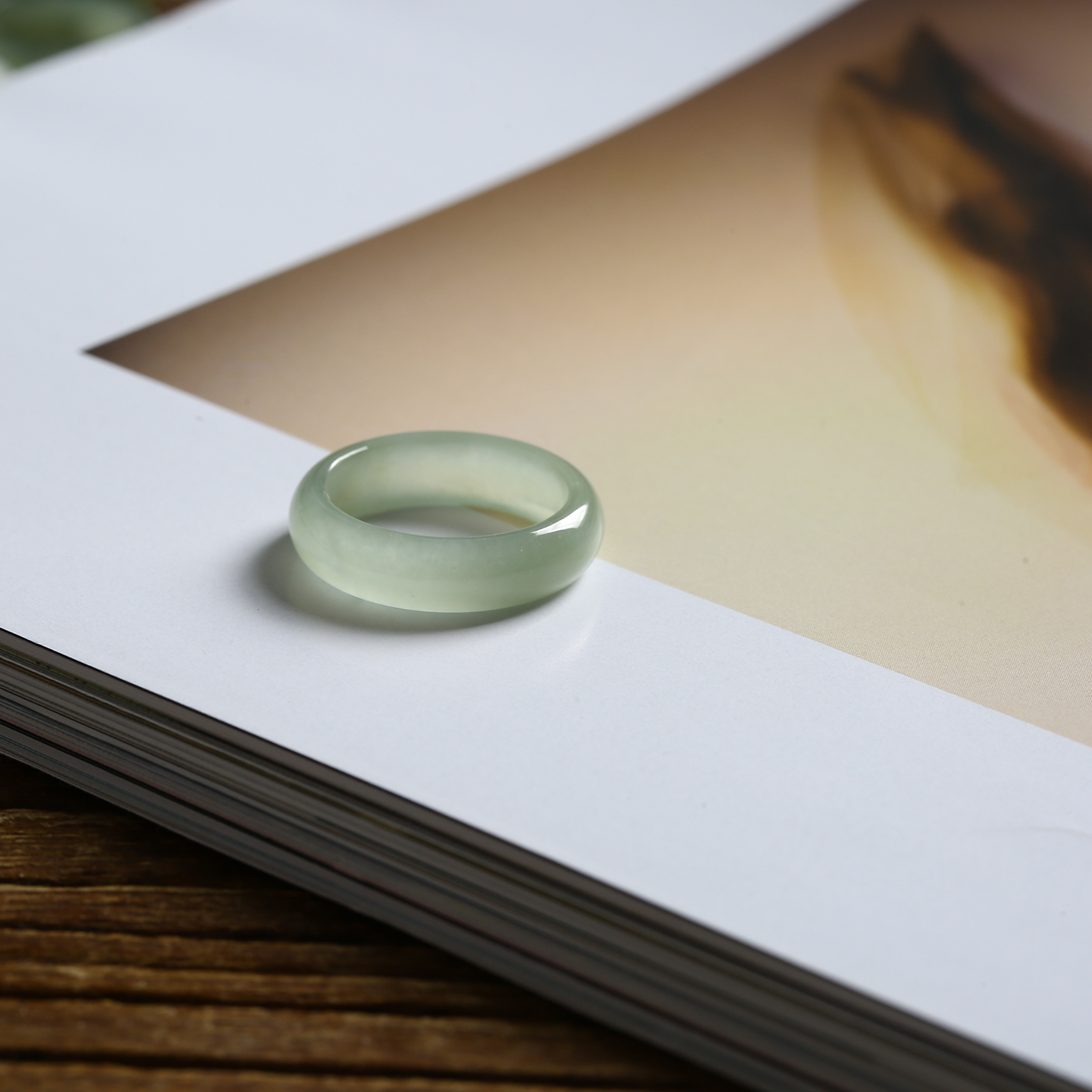 16号戒指 和田玉晴水青白圆弧素圈指环 X63