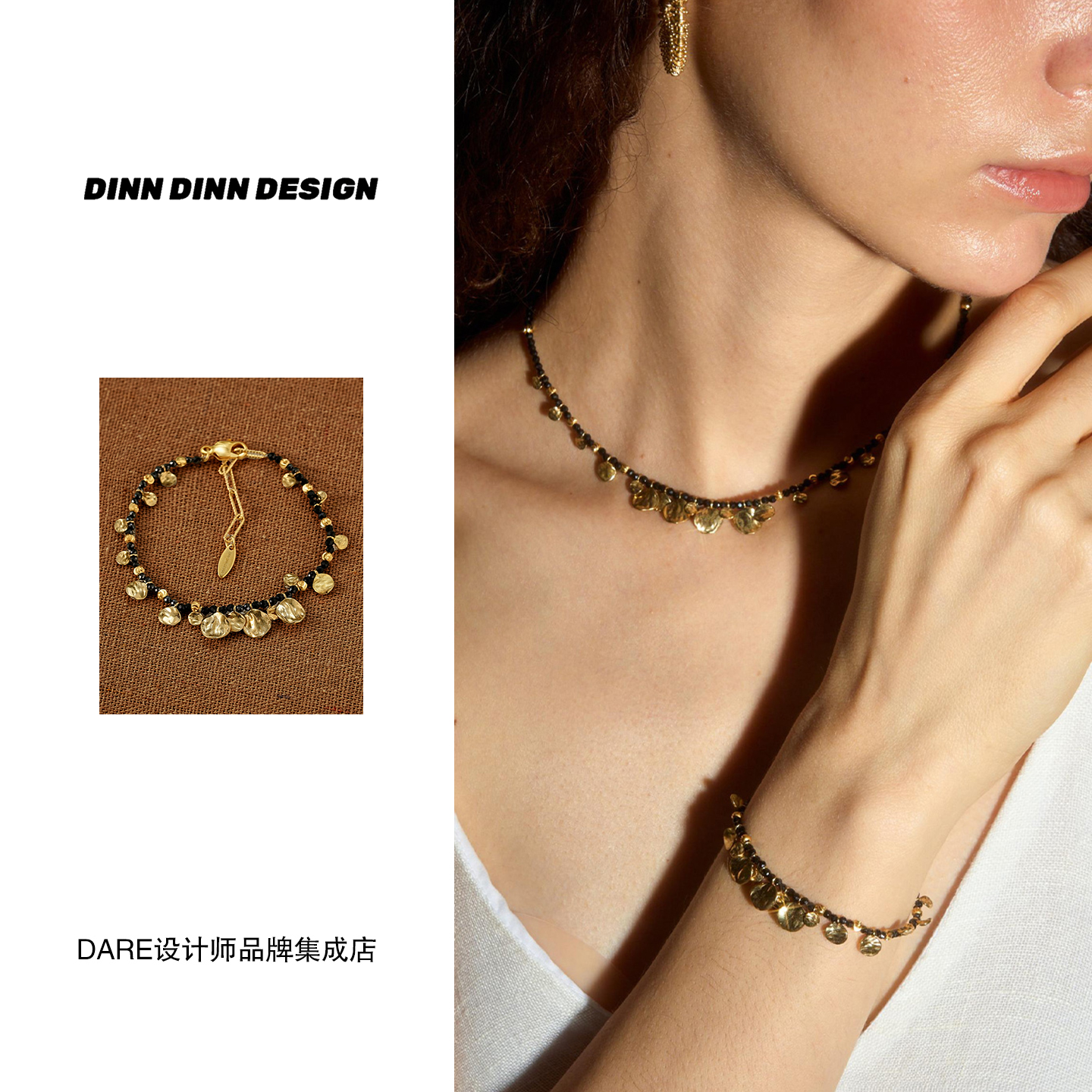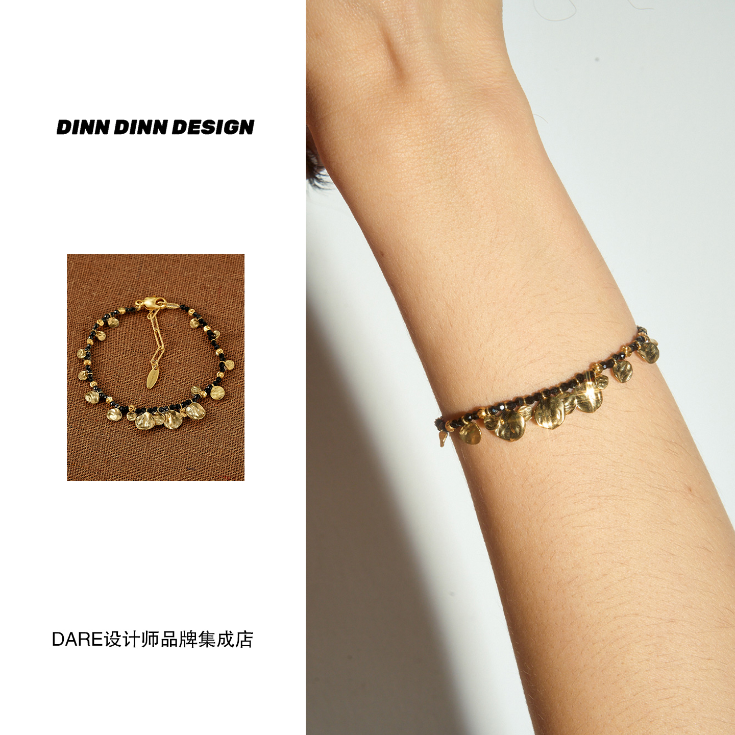 Dare买手店 DINN DINN DESIGN小片片黑色串珠手链复古民族风原创
