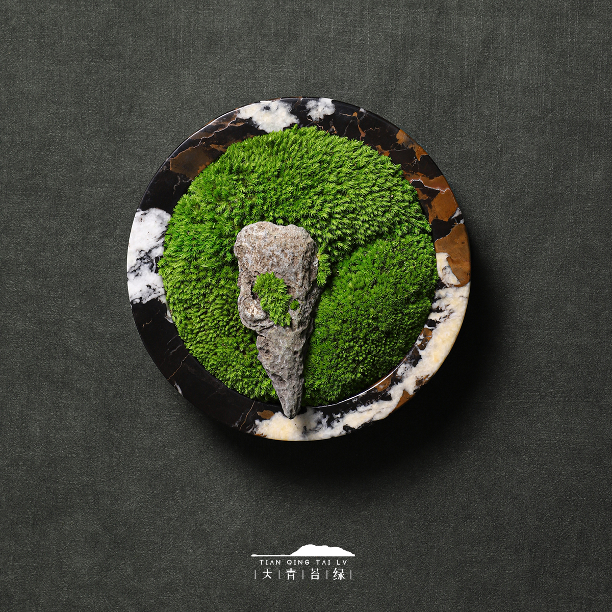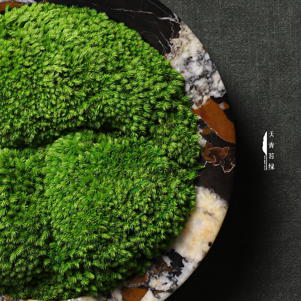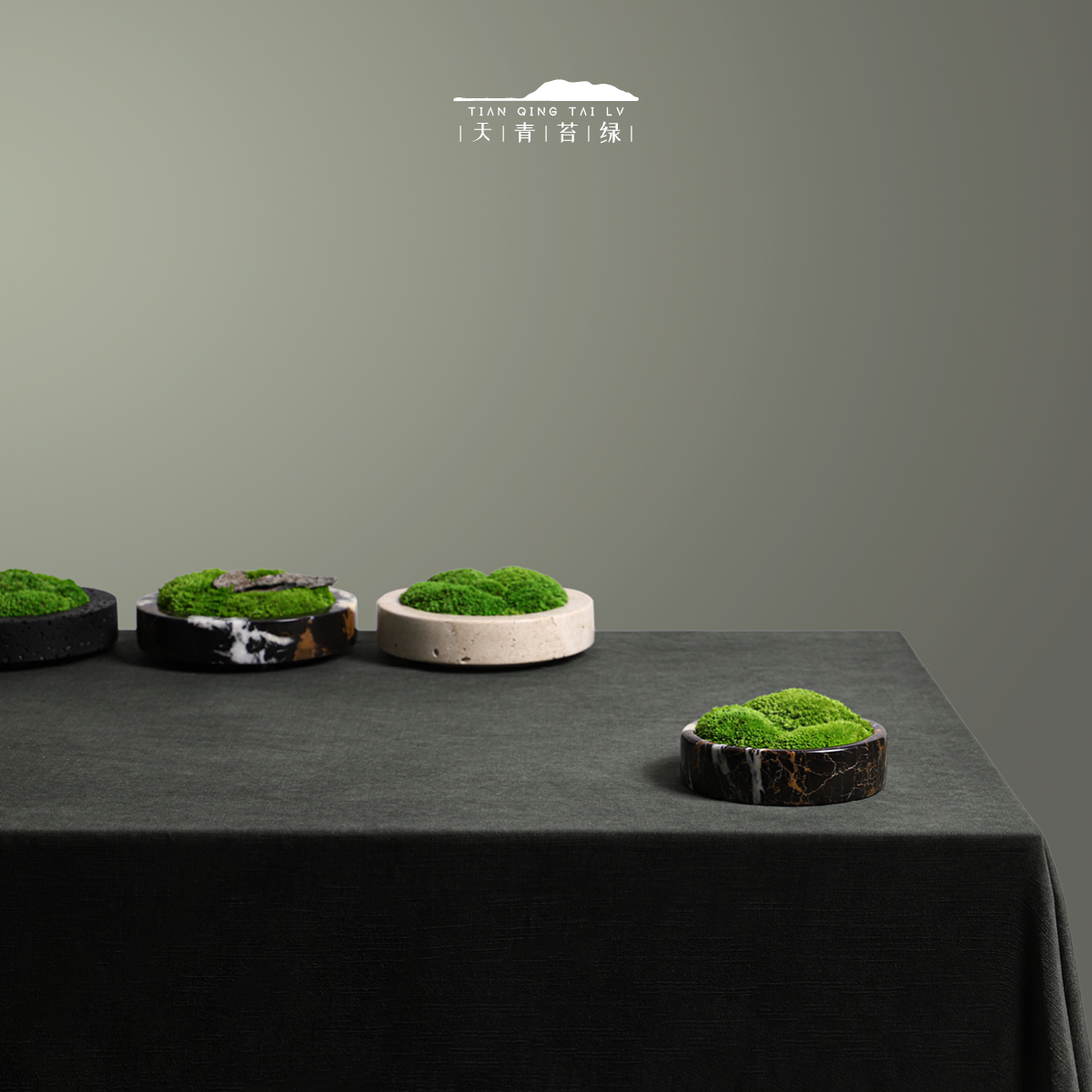 天青苔绿 现代大理石永生苔藓 样板间酒店会所茶几边几茶桌摆件