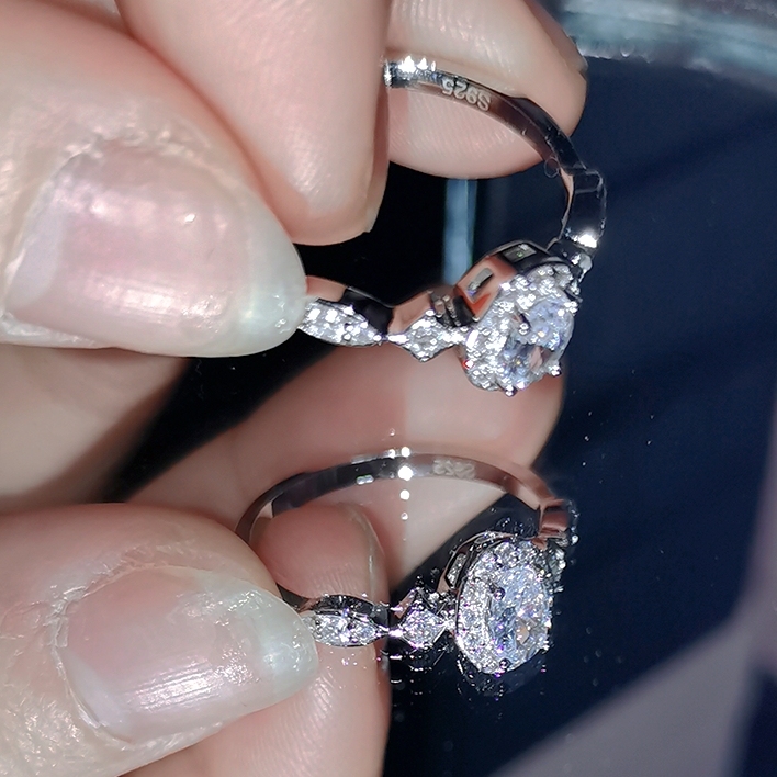 18K白金小鸽子蛋戒指女 群钻微镶椭圆形高碳钻石仿真钻戒节日礼物