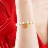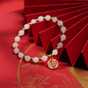 老庙黄金足金福字牌和田玉间金珠手串5D福气常在新中式古典之美