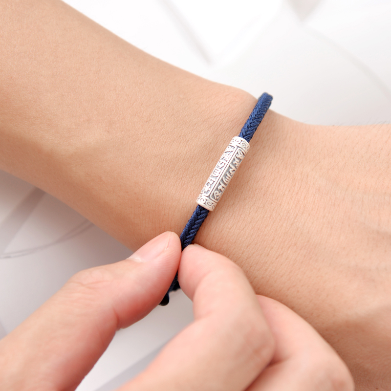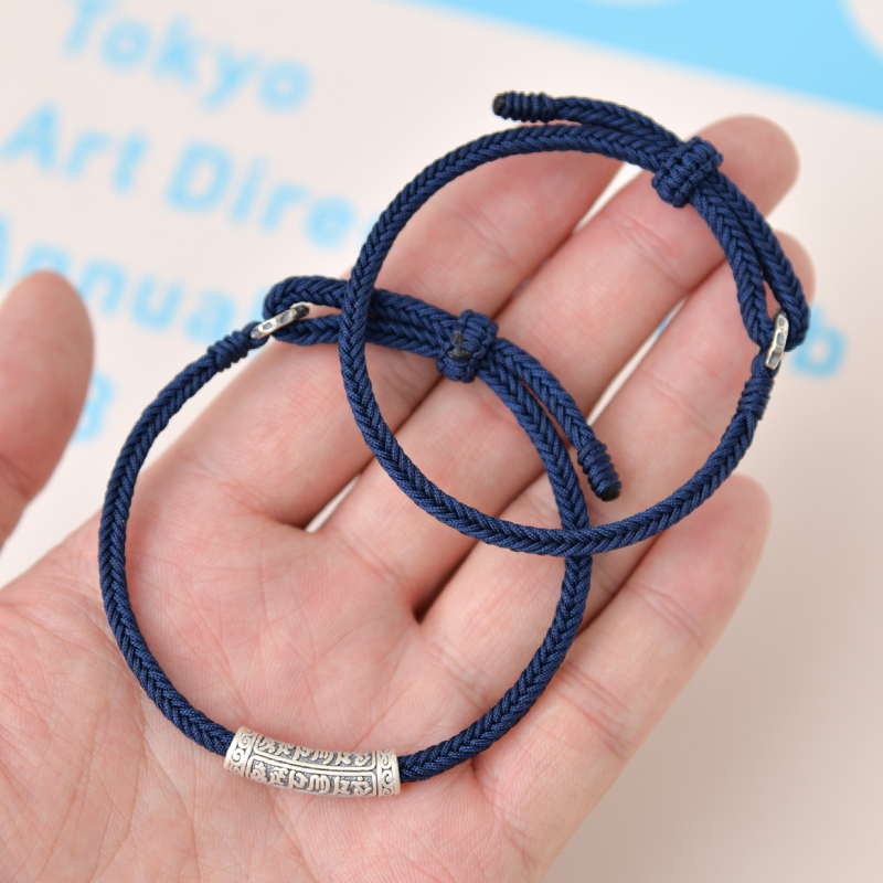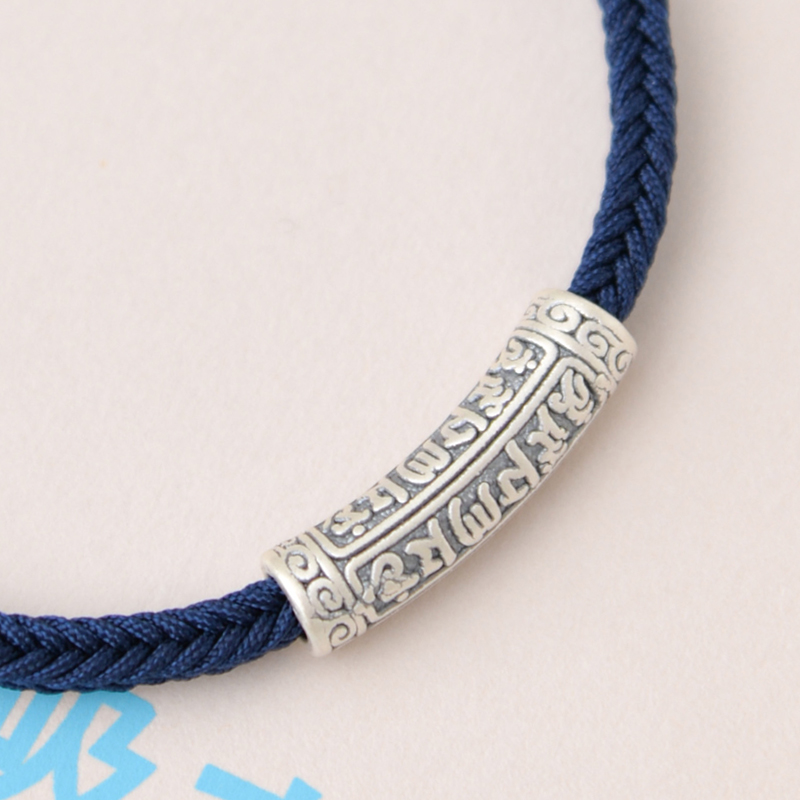 六字真言管五行补水平安绳手工编织可穿珠情侣多色定制藏蓝色手绳