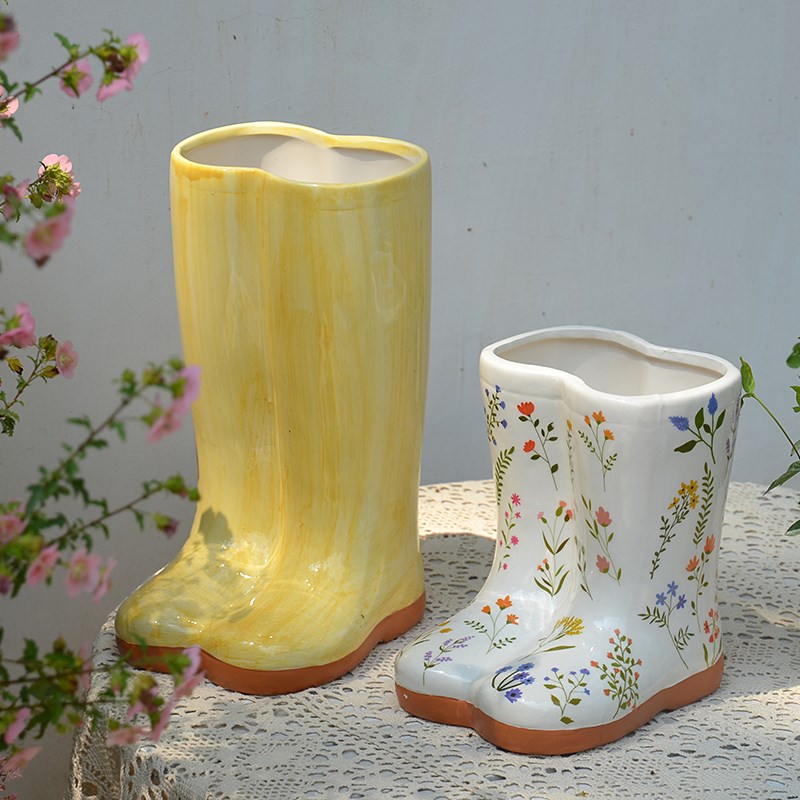 陶瓷靴子雨靴花盆雨伞插桶阳台婚礼花园别墅庭院园艺布景装饰摆件