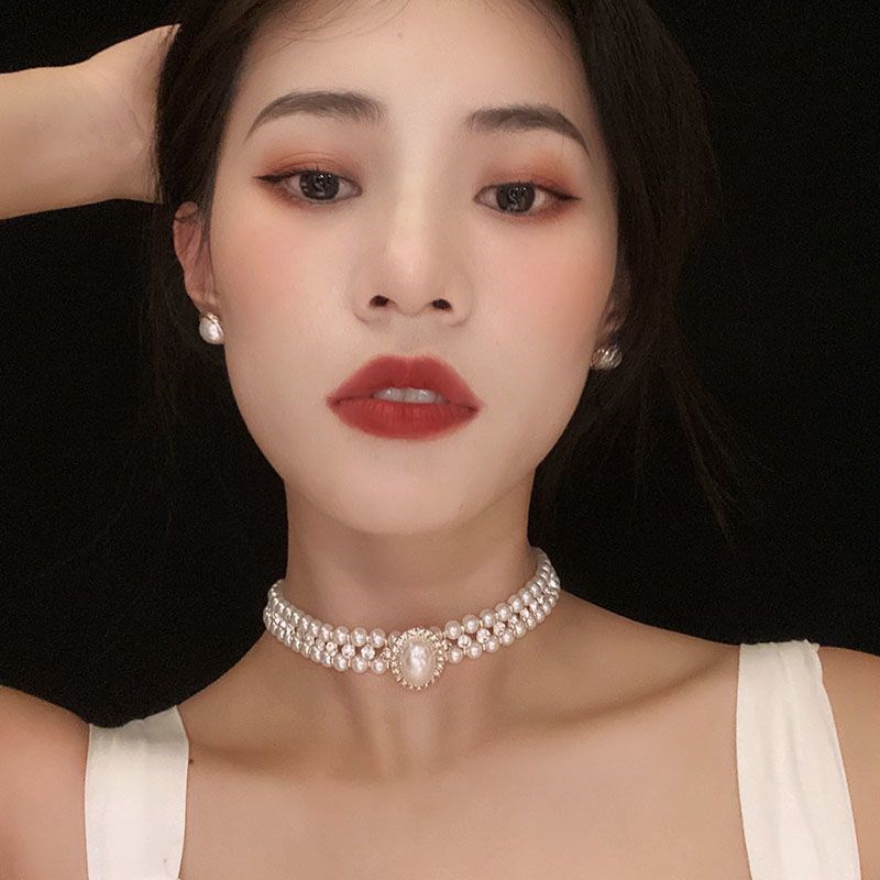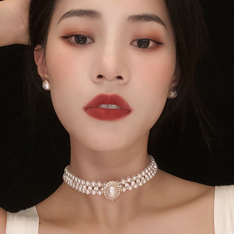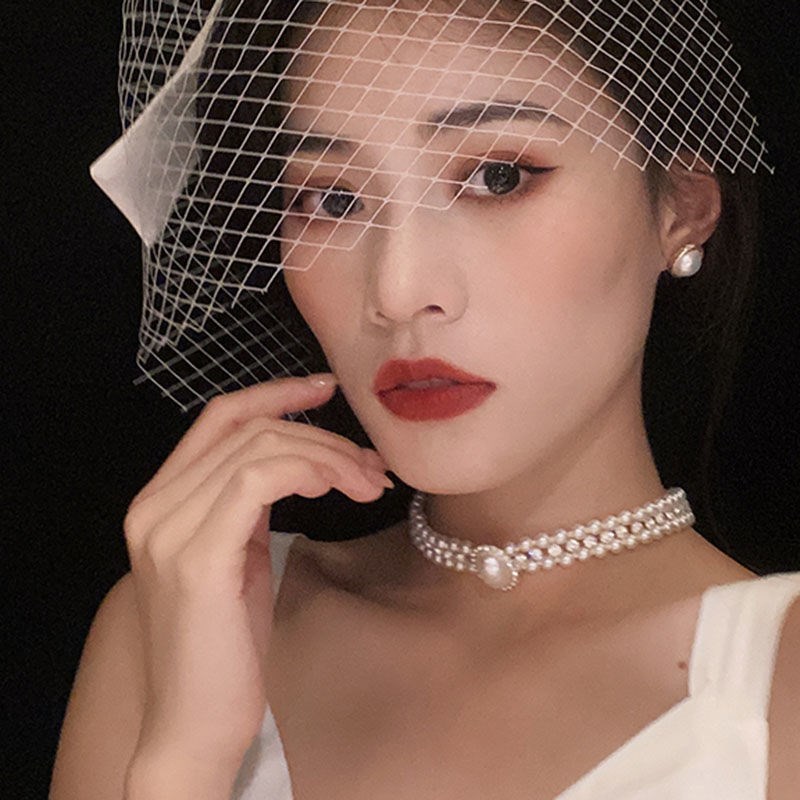 复古多层镶钻拼接珍珠项链颈链女新娘婚纱饰品小众轻奢礼服choker