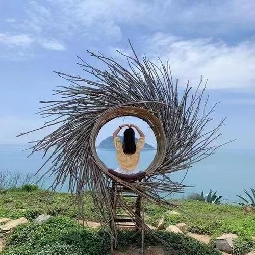 户外网红打卡拍照爱心藤椅花海座椅鸟巢吊椅酒店商场民宿装饰摆件