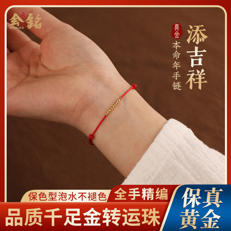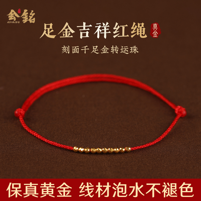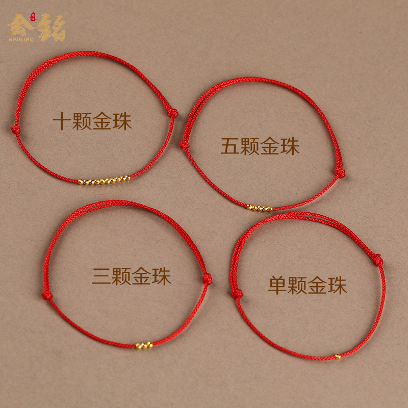 999足金超细红绳手链女黄金转运珠编织手绳本命年吉祥开运保平安