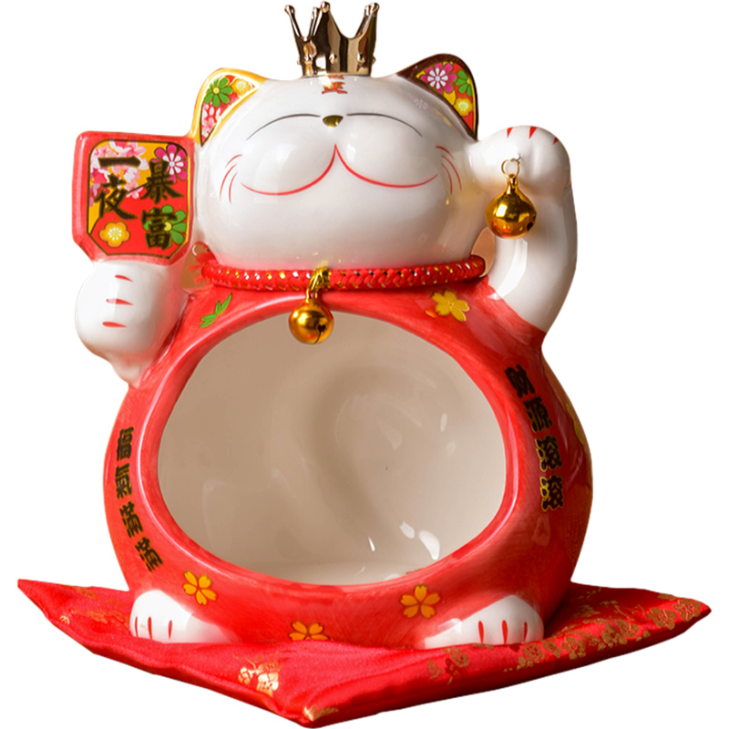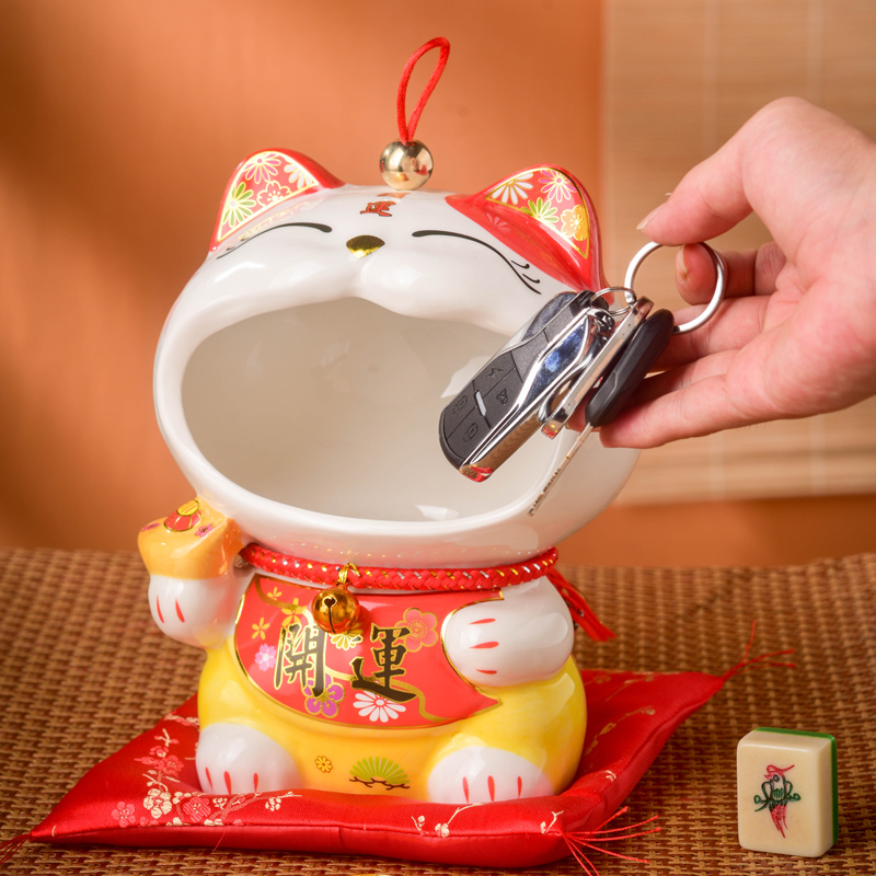 家居装饰品门口玄关放钥匙的收纳摆件创意可爱桌面陶瓷招财猫摆设