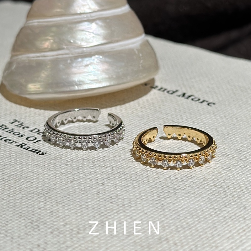 至恩S925纯银排钻轻奢镶钻戒指女金色开口可调节指环高级精致超闪