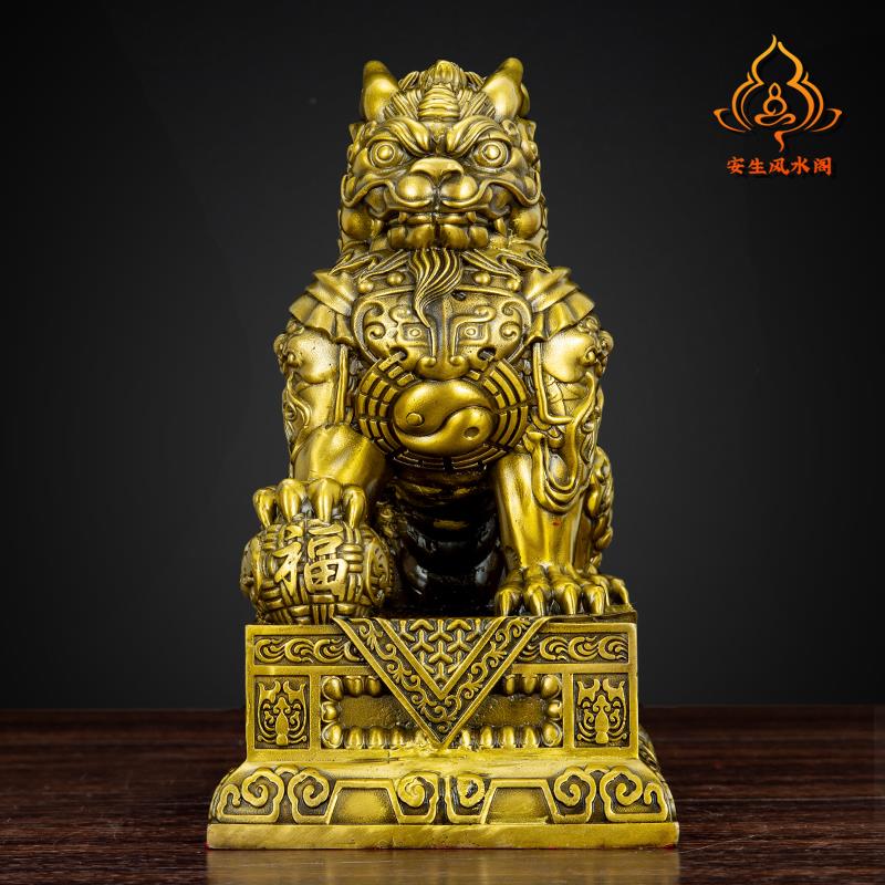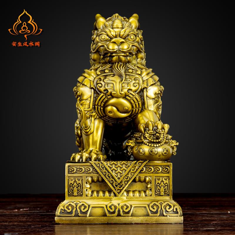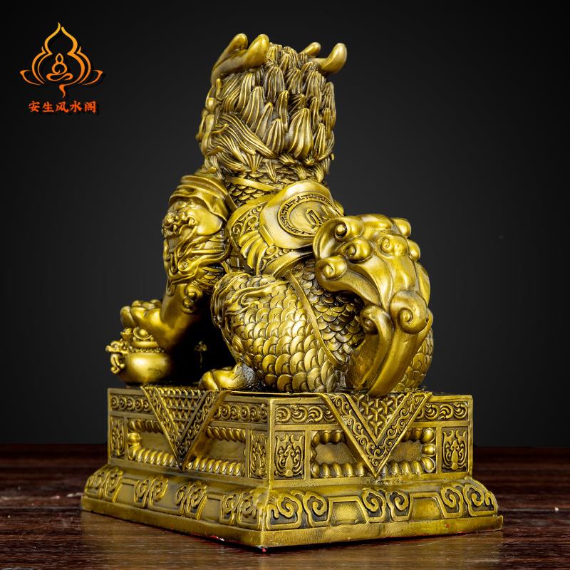 纯黄铜聚财纳福麒麟摆件一对客厅办公室玄关酒柜招财桌面装饰礼品