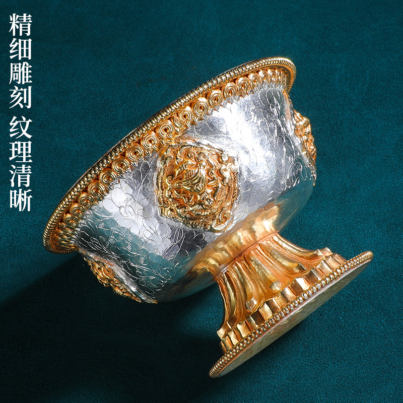 尼泊尔铜鎏金供水碗铜水杯供水杯摆件供碗供杯七供杯一套10cm