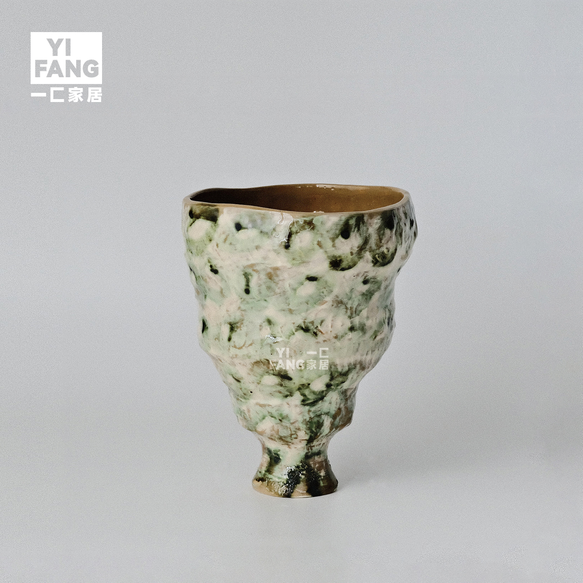 大丹 正品 大丹奶油绿线条中古手工客厅家居软装摆件艺术花器