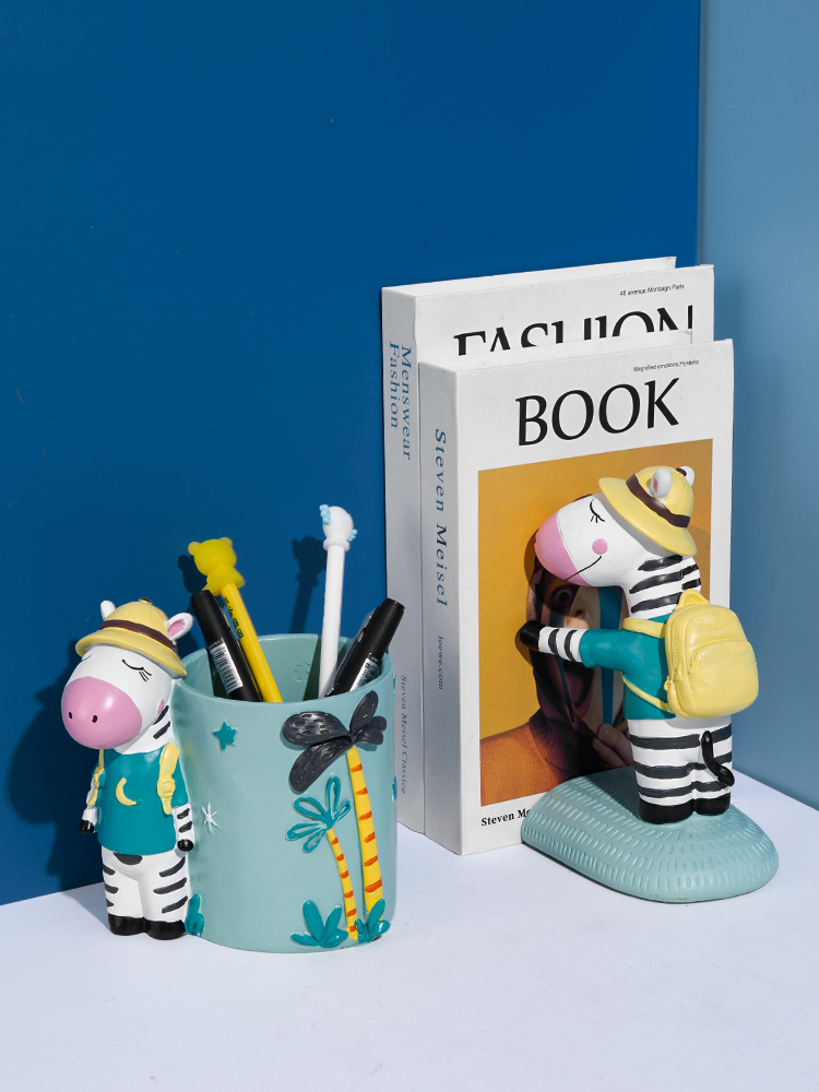 卡通斑马系列可爱萌趣创意收纳托盘笔筒摆件儿童房书房书桌面摆设