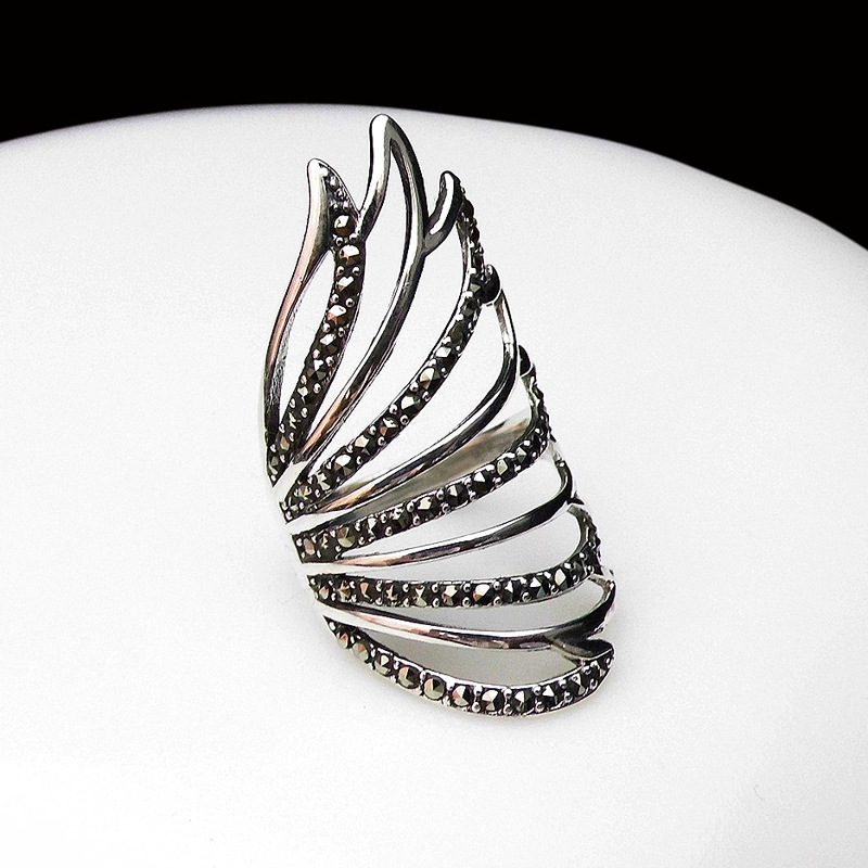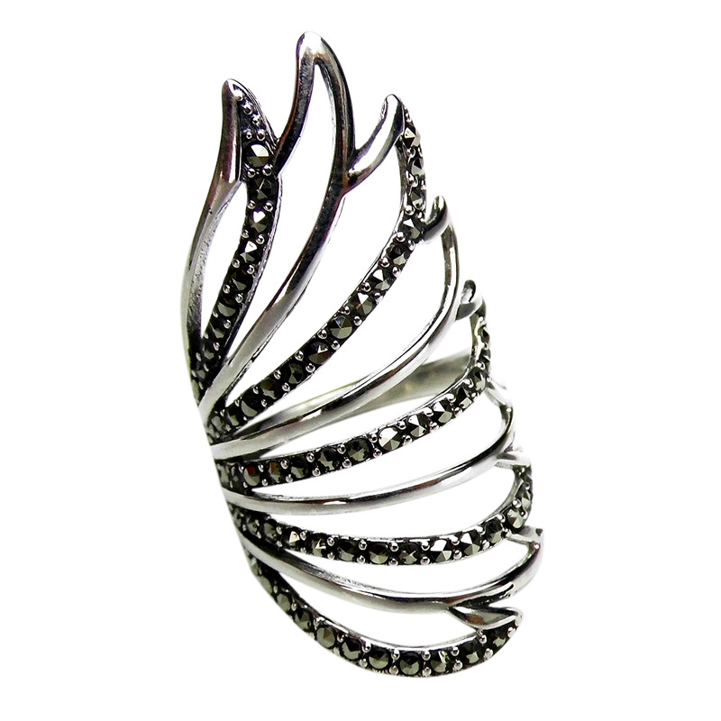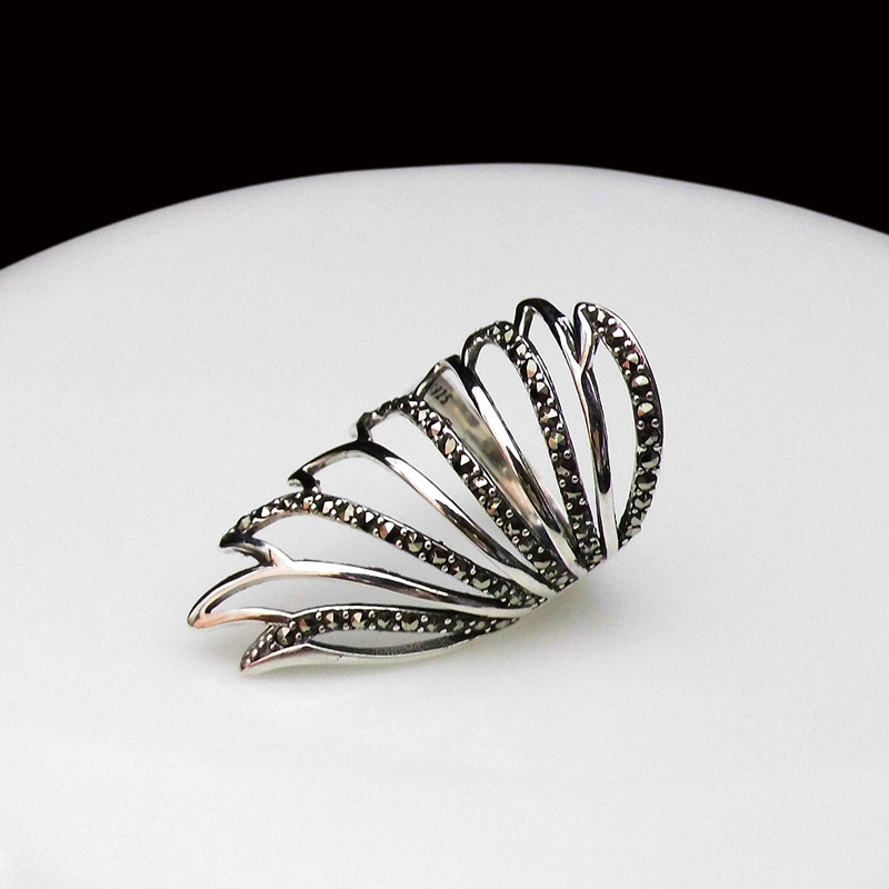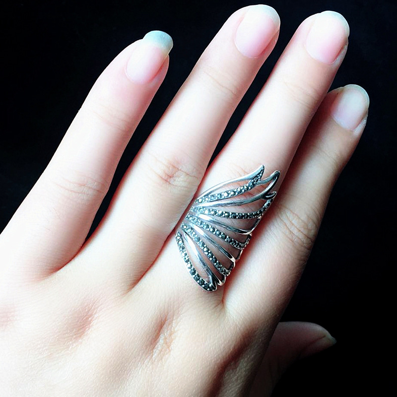 恋尚泰S925银饰品个性羽翼戒指时尚夸张复古开口礼物食指环女新款
