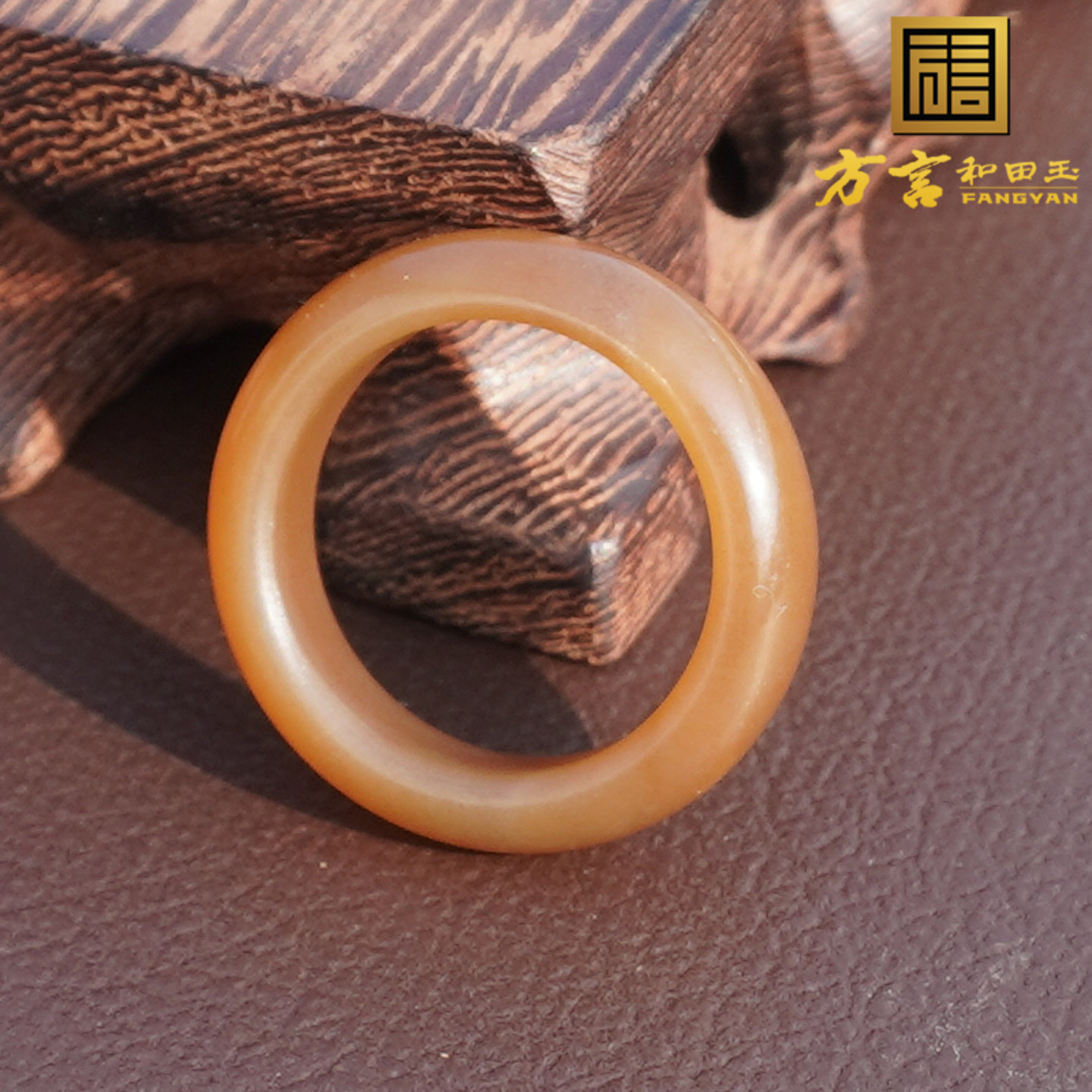 方言品牌和田玉精品新疆且末料油润细腻黄金糖玉内径18.5mm戒指A6