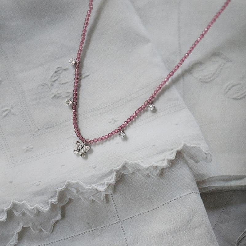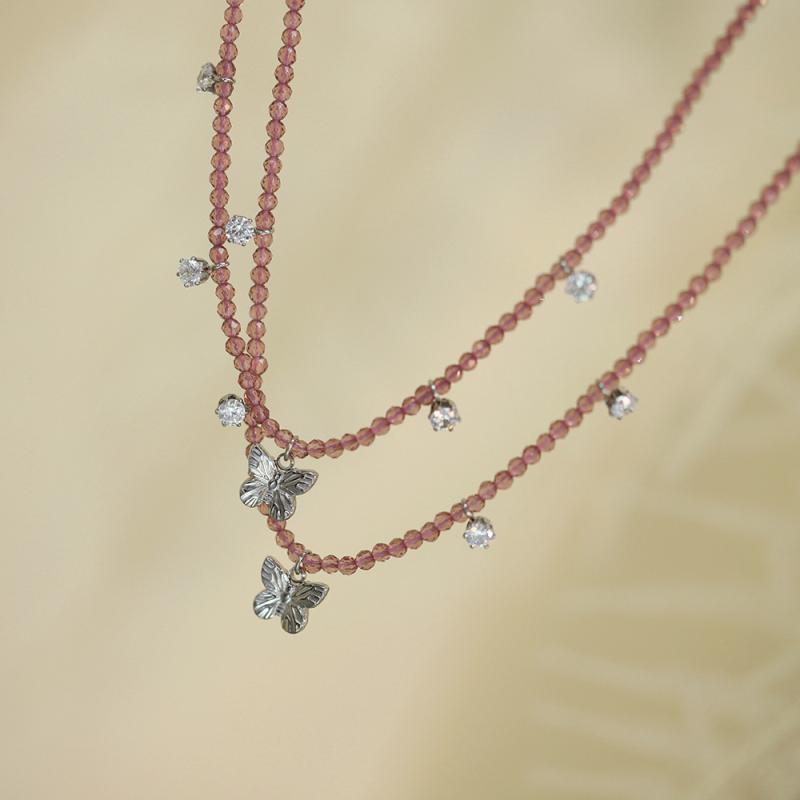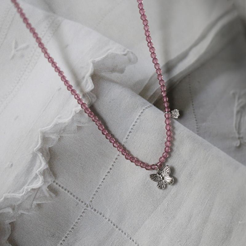 干枯玫瑰色~显白粉紫色蝴蝶古风爪钻串珠项链锁骨链 0.01KG