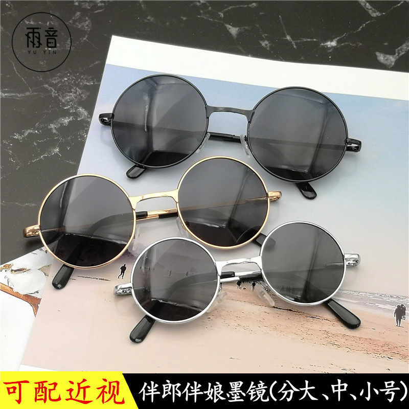 复古男太子镜女原宿圆形结婚伴郎太阳镜伴娘团玻璃墨镜潮近视眼镜
