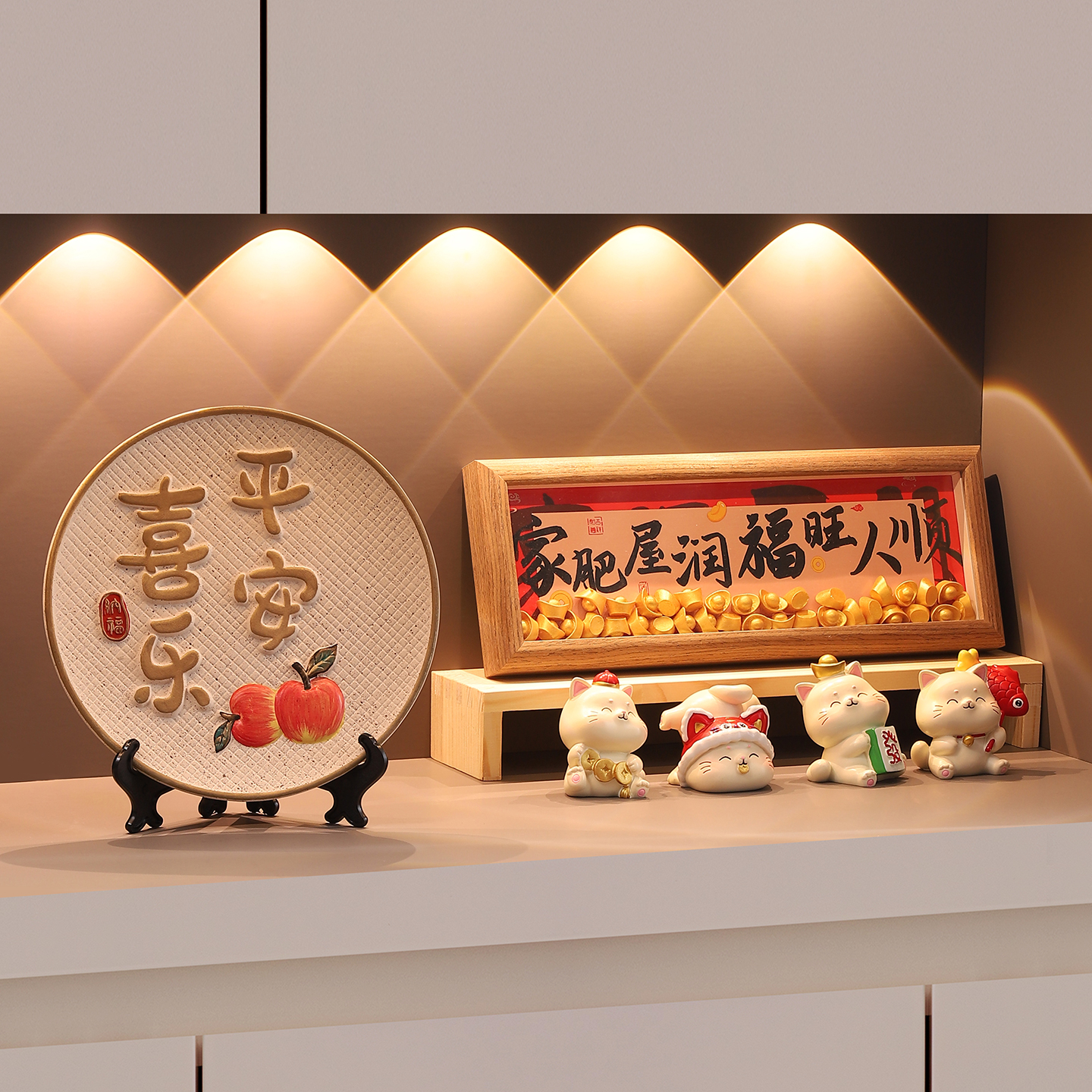 入户玄关钥匙收纳摆件喜庆招财猫家居客厅桌面装饰品乔迁搬家礼物
