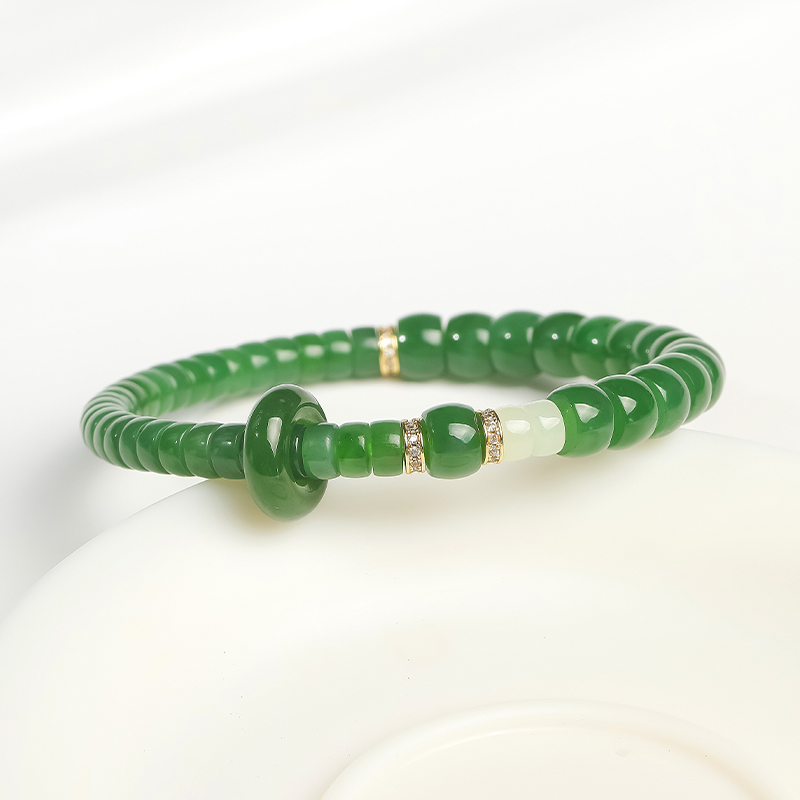 印象眸和田玉手串男女款和田玉碧玉直切珠玉石单圈玉手链生日礼物
