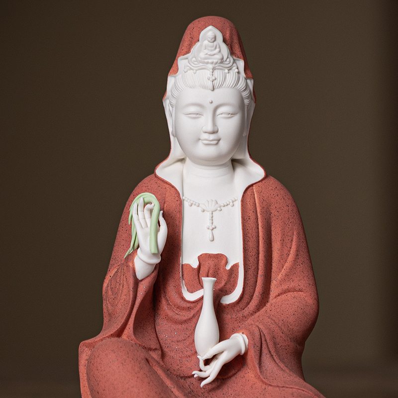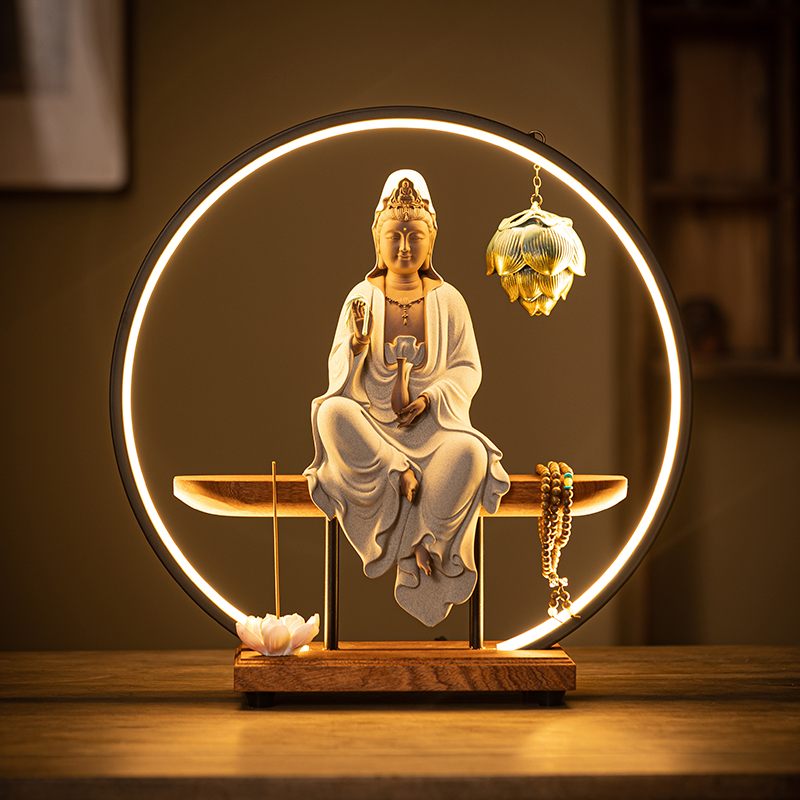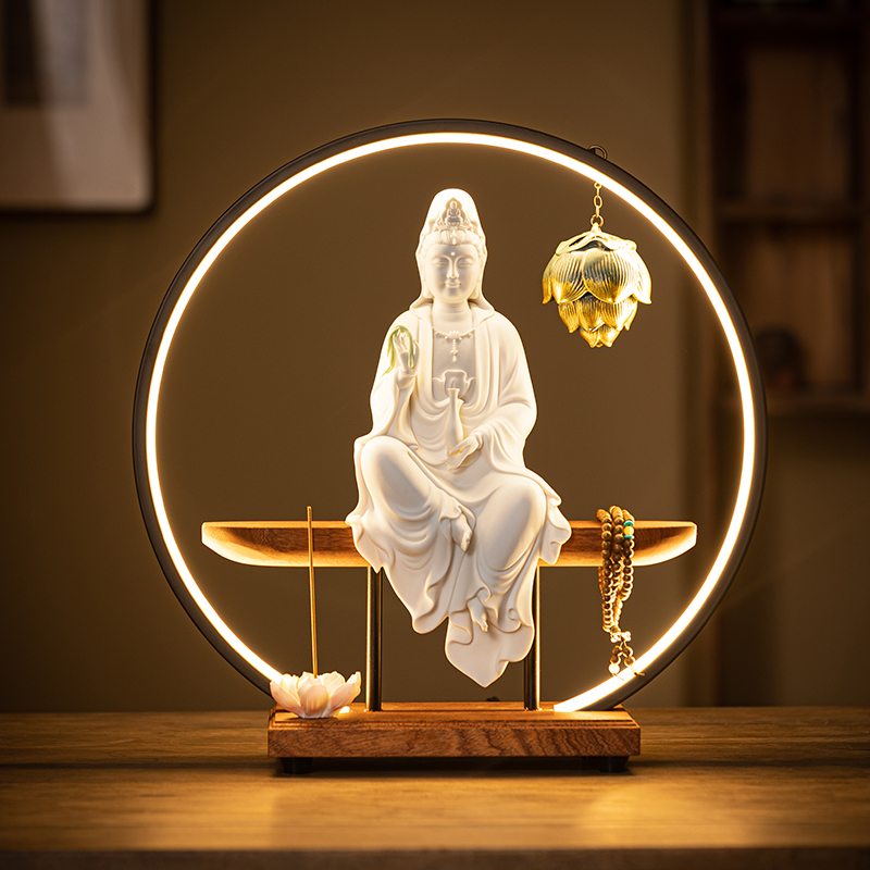 大号观音菩萨家用供奉观音佛像陶瓷摆饰供家用观世音菩萨像投射灯