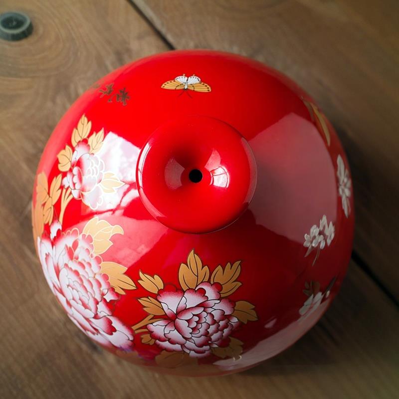 德化中国红陶瓷花开富贵牡丹大红色花瓶摆件工艺品高档客厅高级感