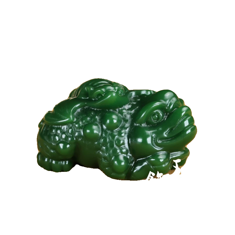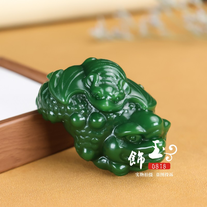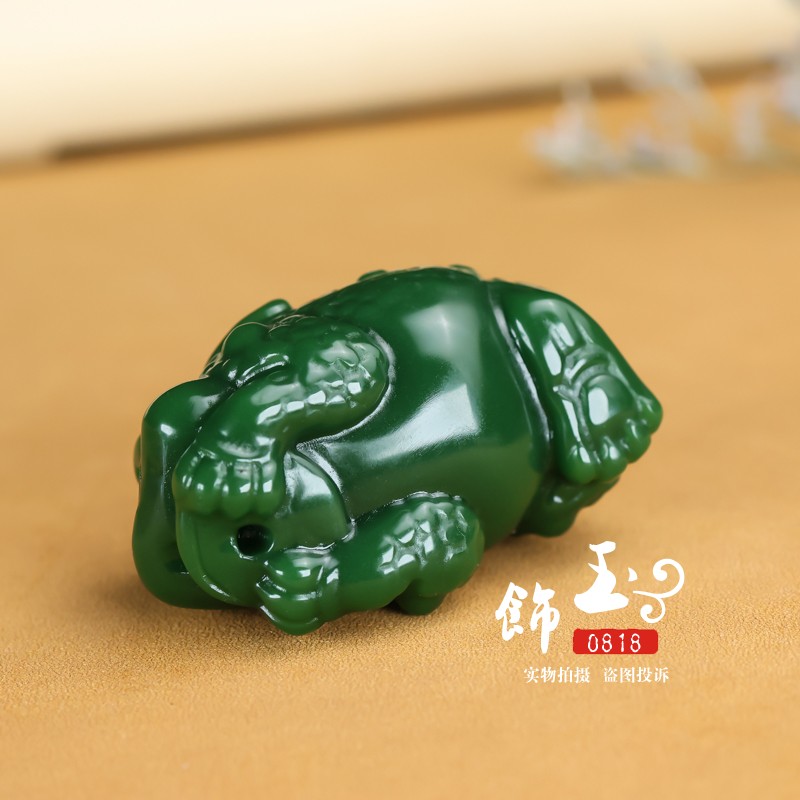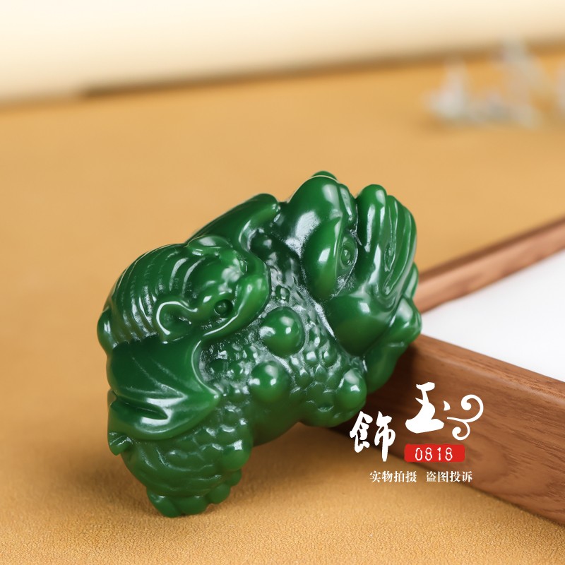 天然新疆和田玉碧玉招财金蟾手把件菠菜绿石三足金蟾护身把件挂件