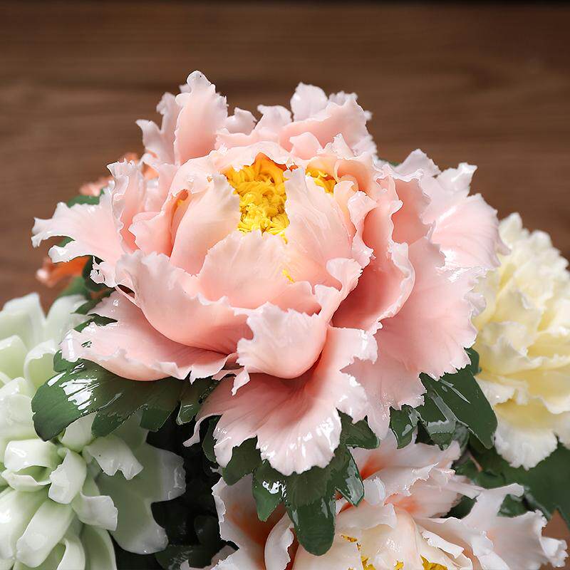 东方泥土花开富贵陶瓷手工牡丹花仿真大号盆栽摆件桌面装饰品