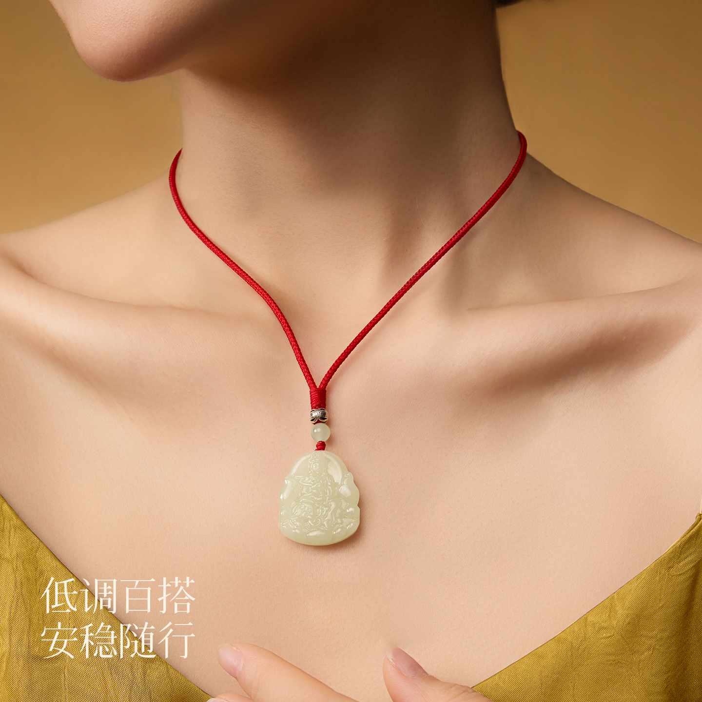 庆祥泰真品天然和田玉吊坠本命佛高级男士女款十二生肖观世音项链