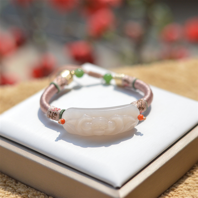 和田玉手牌女士精品手链手环手饰珠串牡丹特色雕花天然保真玉石