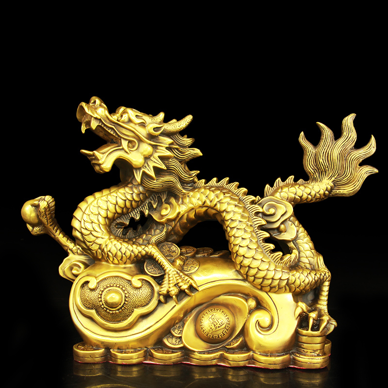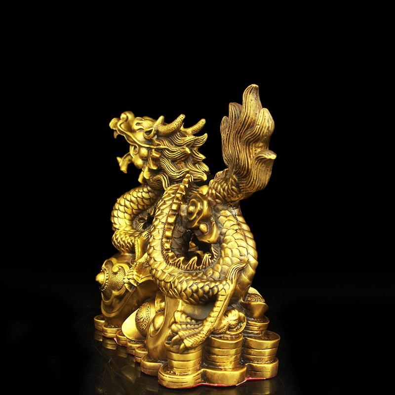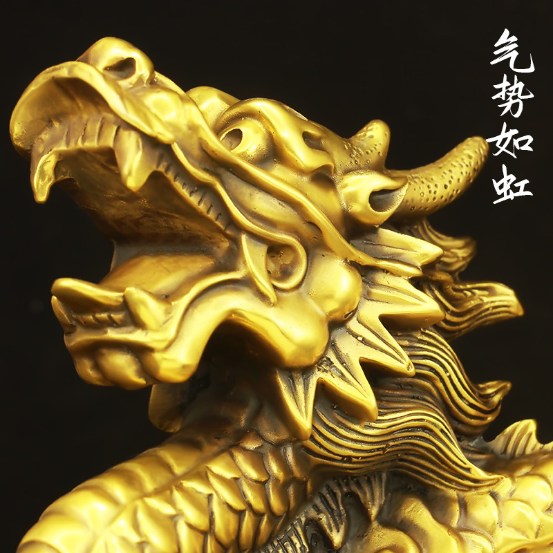 黄铜如意龙摆件招才五爪青龙生肖金龙形工艺品客厅装饰办公室大号