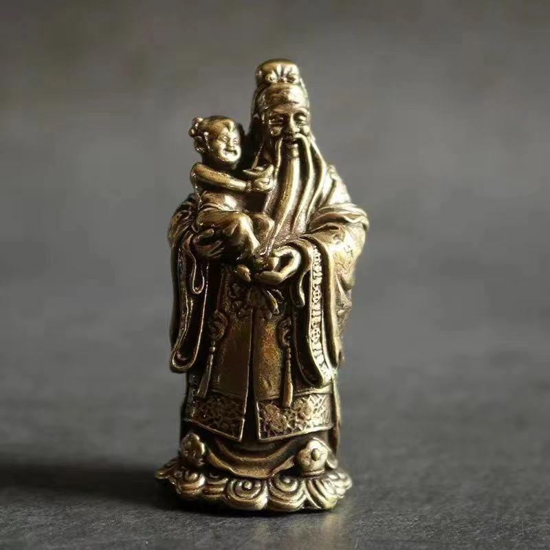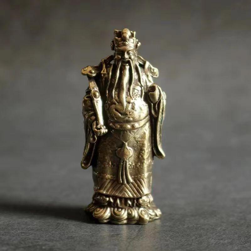 复古纯黄铜办公桌面车载小摆件福禄寿财神古铜随身工艺礼品摆饰手