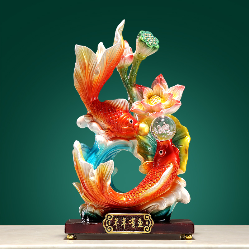 年年有鱼招财摆件创意新中式工艺品树脂客厅玄关酒柜装饰品桌面