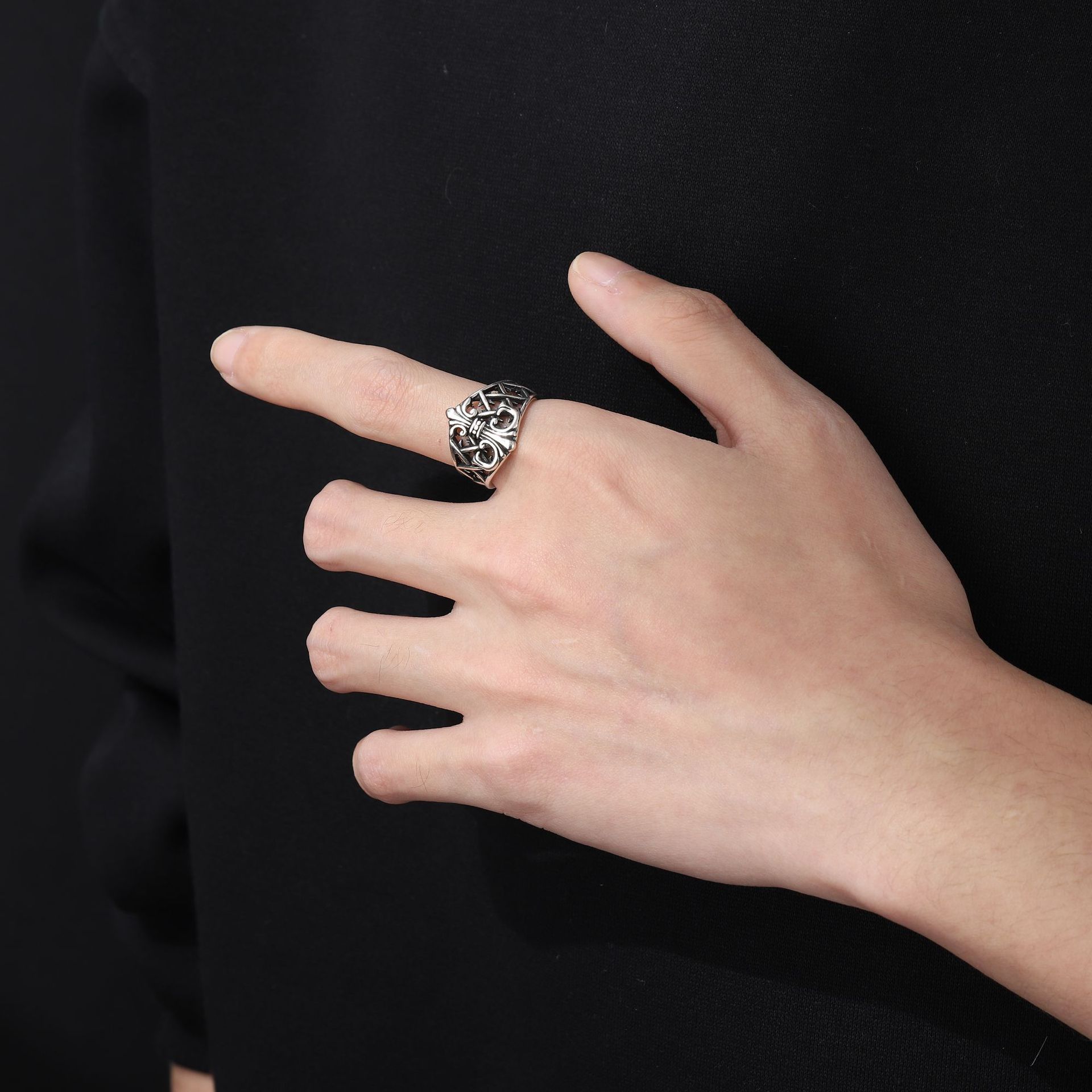 《船锚》戒指男做旧复古潮牌十字架开口可调节指环女高级百搭饰品