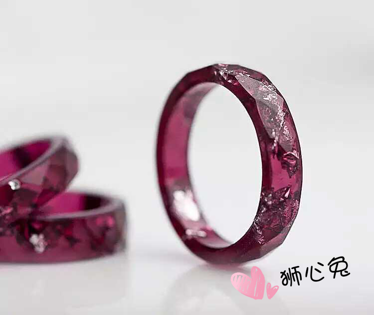 狮心兔 玫红色银箔 树脂刻面戒指 半透明 戒指女戒包邮