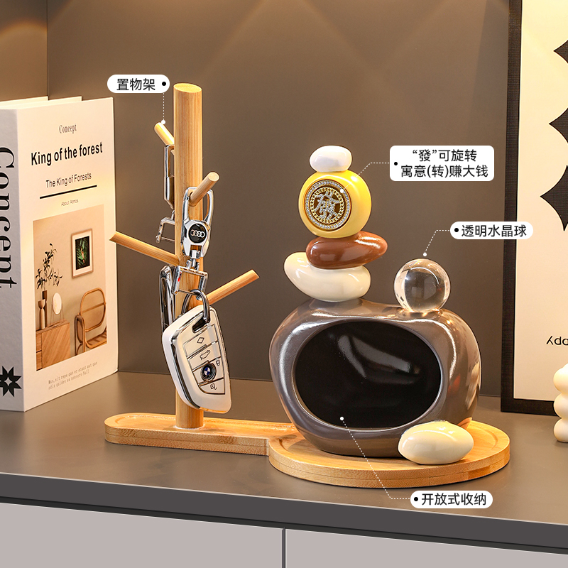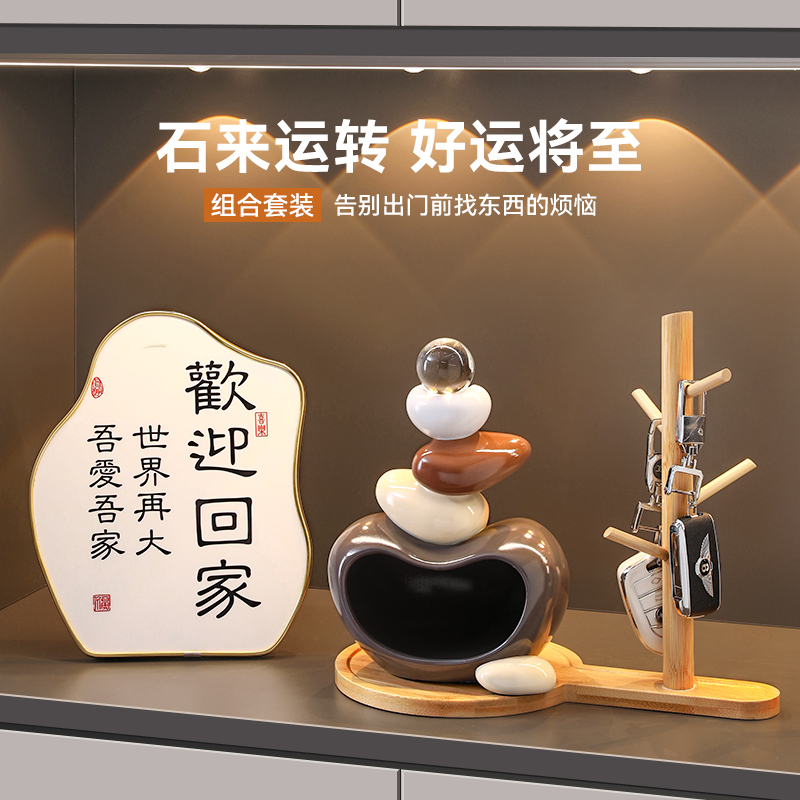 海贝海石来运转钥匙收纳玄关摆件入户鞋柜门口客厅装饰品乔迁礼物