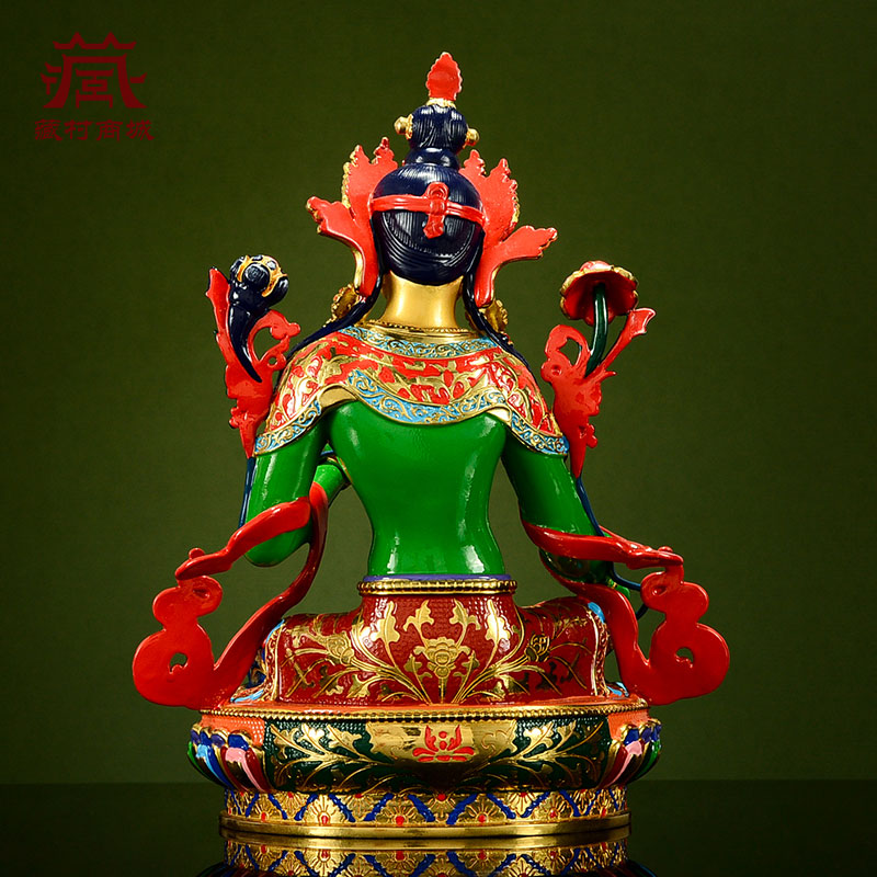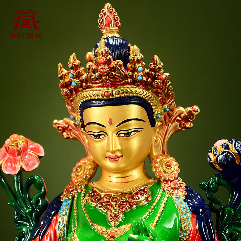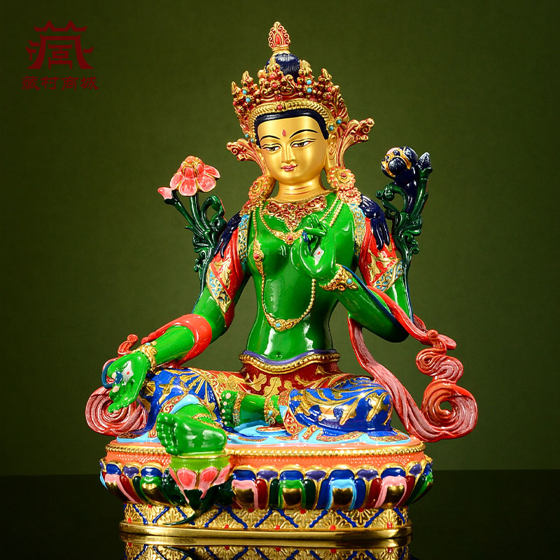 绿度母铜像室内家用台湾铜彩绘现代桌面八难度母客厅摆件