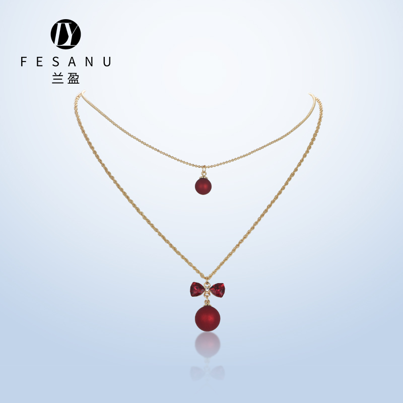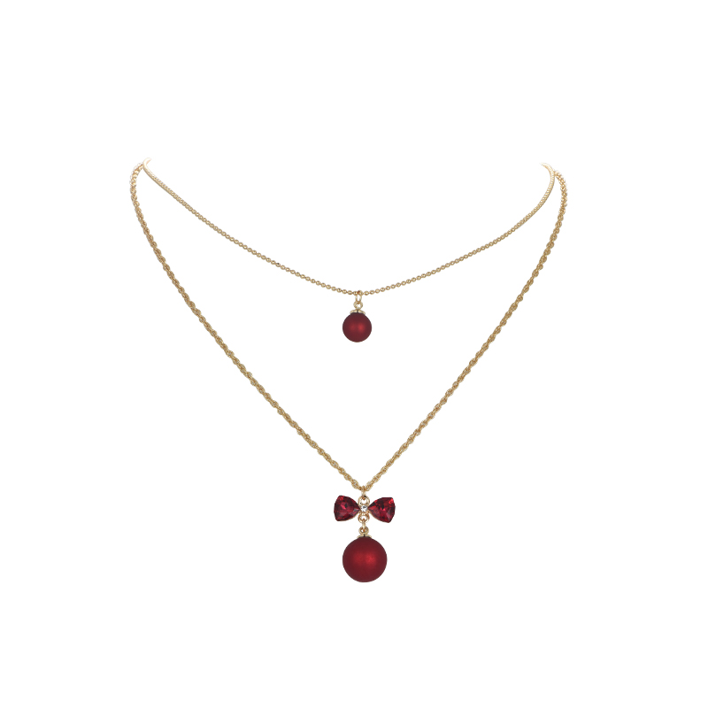 【新品】设计师蝴蝶结水晶项链串珠吊坠女双层叠戴人造珍珠锁骨链