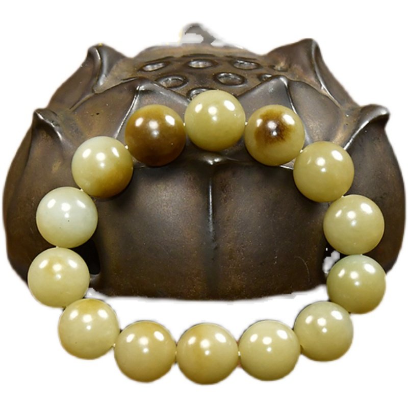 已结缘新疆和田玉手串糖青白手链16MM圆珠俏色且末料天然男女款
