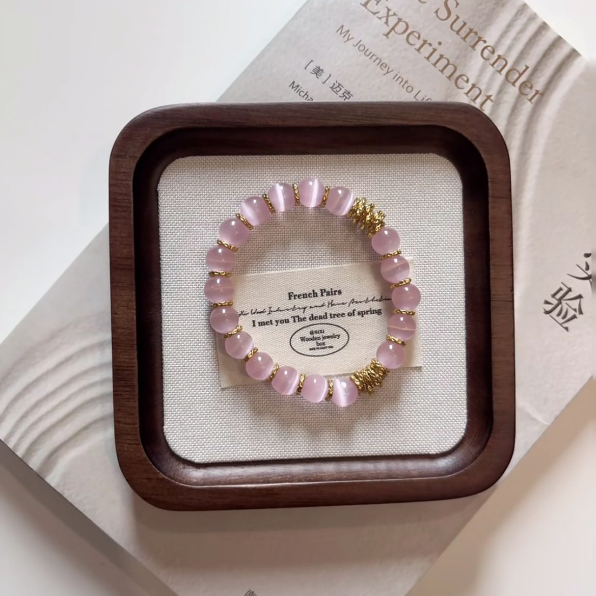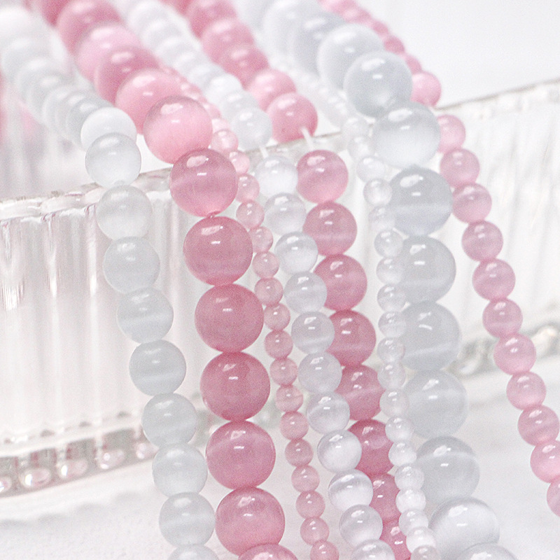 草莓猫眼粉色DIY冰系冰系粉色草莓仿猫眼石手串散珠仿琉璃饰品