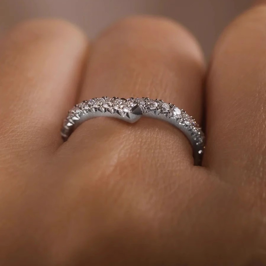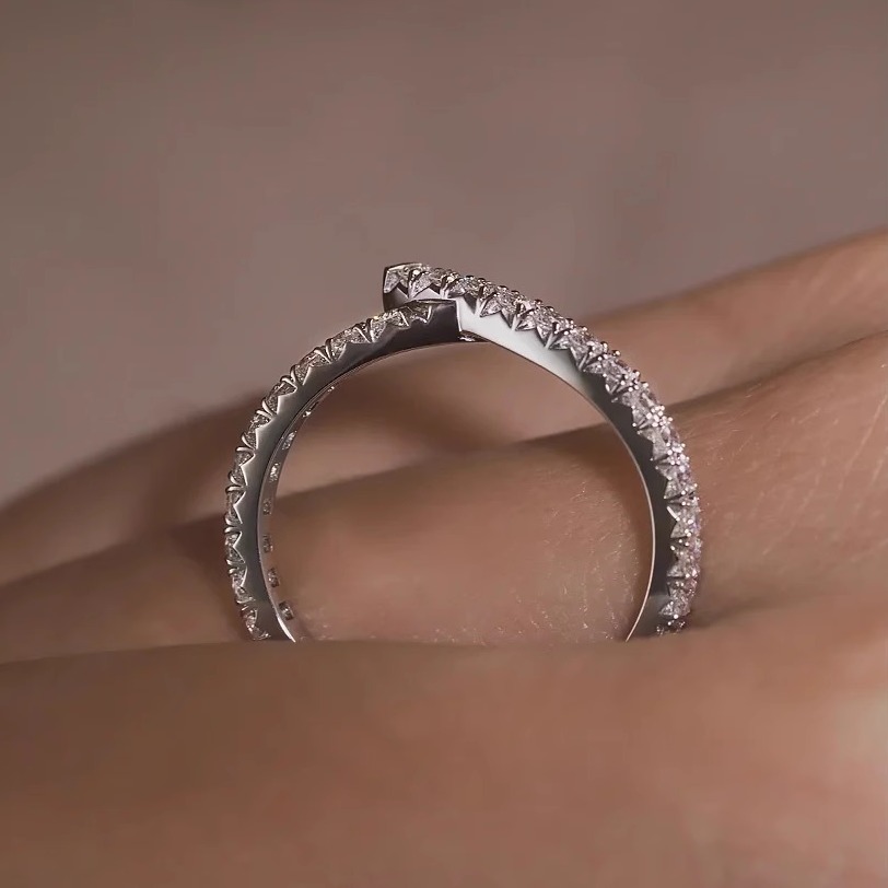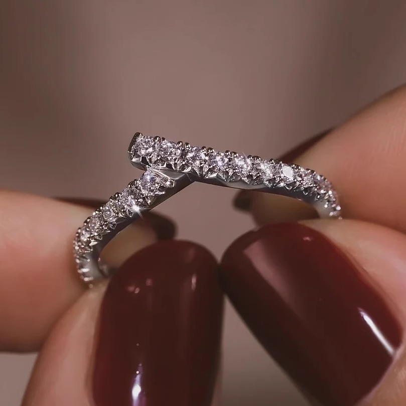 S925纯银莫桑石戒指V字戒钻戒精致百搭款叠戴副戒指环情人节礼物
